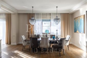 Лот: 104438. Просторный загородный дом площадью 720 кв.м с дизайнерским ремонтом построен в премиальном коттеджном поселке ''Миллениум Парк''. Внутреннее пространство наполнено светом благодаря большой площади остекления и нейтральной цветовой гамме интерьера. Комфортная планировка. На первом этаже находится гостиная с камином, кухня, совмещенная с обеденной зоной, санузел, спальня с санузлом, гардеробная, детская игровая, холл, постирочная, котельная, кладовая, комната персонала, патио. Второй этаж занимает спальня с гардеробной и санузлом, две спальни с гардеробными, еще одна спальня, санузел, спа-зона с сауной, джакузи, хаммамом, душевой и комнатой отдыха. Третий этаж отведен под кабинет и кинотеатр. Предусмотрен встроенный гараж для двух автомобилей. На участке 25 соток выполнен великолепный ландшафтный дизайн, есть ротонда, оборудована детская площадка. Поселок окружают первозданные леса, чистейший воздух и развитая инфраструктура Новой Риги. Для собственников домов организован закрытый клуб, обладателей клубных карт приглашают на светские мероприятия, закрытые показы и спортивные соревнования.