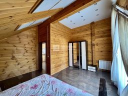 Прекрасный двухэтажный дом из оцилиндрованного бревна, для круглогодичного проживания, общей площадью 171 м2 со вторым светом на участке 20 соток!Первый этаж: гостиная с камином, кабинет, кухня, гостевой санузел с душевой, гардеробная,тех.помещение.Второй этаж: три спальни, санузел с ванной.На участке гараж на два машино-места, Патио, баня.Коммуникации: Газ, электричество 15 кВт, вода из скважины, септик.При постройке и отделке использовались высококачественные материалы, всё в идеальном состоянии.Охраняемая территория поселка, въезд через шлагбаум!