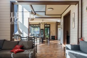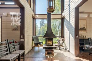 Арт. 70775525 Вашему вниманию представляется уютный деревянный дом с прекрасным видом на собственный водоём, расположенный в благоустроенном посёлке Живописный, всего в 33 км от МКАД по Рогачёвскому шоссе.Это замечательное тихое место для жизни и отдыха в окружении лесного массива, где вы сможете насладиться всеми прелестями загородной жизни. Природа здесь максимально близка и доступна, предлагая разнообразные возможности для активного времяпрепровождения и расслабления.Дом общей площадью 386 кв. м выполнен в два уровня с использованием высококачественных и энергоэффективных материалов. Полностью меблирован и оснащён для комфортного проживания.Современный экстерьер дома с большими панорамными окнами и вторым светом добавляет ощущение простора и легкости, позволяя вам ежедневно наслаждаться естественным светом и красивым видом на окружающую природу. Стильная архитектура дома органично вписывается в естественный ландшафт, окружённый взрослыми деревьями.Внутри дома вас ждёт уникальная атмосфера уюта и гармонии. Планировка максимально функциональна и продумана: стильная гостиная с камином и вторым светом, светлая кухня-столовая с выходом на террасу, где вы сможете наслаждаться утренним кофе, любуясь видом на собственный водоём. Дом предоставляет пять просторных спален, каждая из которых оснащена собственным санузлом, обеспечивая максимальный уровень комфорта для всех членов семьи. Дополнительные пространства предлагают возможность организовать кабинет или игровую комнату для детей.Одной из главных изюминок дома, является зарыбленный пруд, в котором обитает множество видов рыбы, среди них: белый амур, толстолобик, карп, карась (серебряный и золотой), линь и красноперка.Участок площадью 20,53 сотки окружён вековыми деревьями, благодаря которым создаётся непередаваемая атмосфера уединения и спокойствия. Участок находится в живописной локации, где пение птиц, шорох листьев и свежий воздух — станут вашими постоянными спутниками, создавая неповторимое ощущение загородного уюта.На территории участка организована просторная площадка для паркинга, сделано освещение, устроены удобные дорожки. При въезде установлены ворота на электроприводе.Коммуникации: магистральный газ, электричество 15 кВт, центральное водоснабжение, канализация — септик.Планировка:Первый этаж: холл, прихожая, гостевая спальня, санузел, котельная, спальня с собственным санузлом, гостиная с каминной зоной и вторым светом, кухня-столовая с выходом на террасу, просторная терраса с зоной для отдыха и BBQ.Второй этаж: холл, детская спальня с санузлом, две мастер-спальни, гостевая спальня, балкон.Коттеджный посёлок ''Живописный'' — это камерный посёлок, расположенный в окружении обширного лесного массива. Территория посёлка огорожена, а число домовладений ограничено 55, что обеспечивает жителям уединение и комфорт. Название посёлка ''Живописный'' обусловлено как уникальным ландшафтом, так и наличием множества водоёмов в его окрестностях, включая водохранилища и озёра.КП ''Живописный'' находится в 33 км от МКАД. Добраться до посёлка можно по нескольким основным магистралям: Рогачёвскому, Дмитровскому и Ленинградскому шоссе. Такая транспортная развязка обеспечивает жителям посёлка лёгкий и быстрый доступ как к столице, так и к ключевым инфраструктурным о