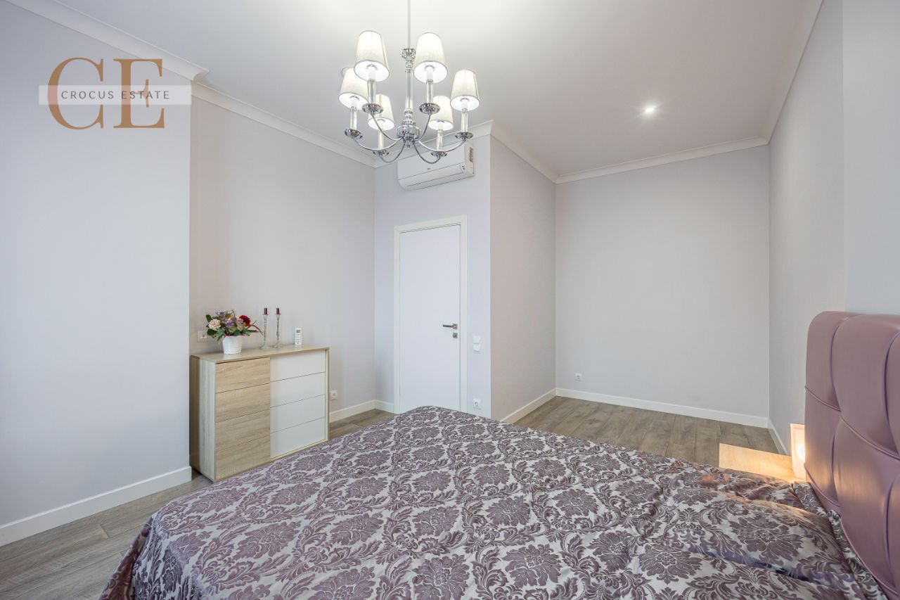 Трехкомнатная квартира в комплексе бизнес-класса Headliner Предлагаем вашему вниманию трехкомнатную квартиру в элитном жилом комплексе Headliner. Планировка квартиры включает просторную гостиную площадью 28 м², объединённую с зоной кухни, а также две изолированные спальни с большими кроватями. В квартире также есть просторная гардеробная и два санузла. Для создания комфортного микроклимата в каждой комнате установлен кондиционер. Кухонный гарнитур оснащён полным комплектом бытовой техники, включая посудомоечную машину и микроволновую печь. Без учёта КП. Подъезд оборудован комнатой для колясок, и велосипедов, санузлом и зоной отдыха. Лифты в доме скоростные и бесшумные. В непосредственной близости от дома находятся образовательные и медицинские учреждения, два супермаркета, салоны красоты, ресторан и кафе. Чуть дальше расположены торговые центры, отделения банков, фитнес-клубы и бизнес-центр ''Москва-Сити''. Для любителей прогулок открыты Шелепихинская набережная и парк Фили. В двух минутах ходьбы находится станция МЦК ''Шелепиха''. Через пешеходную галерею, которая соединяет жилой комплекс и бизнес-центр, можно за 5 минут добраться до станций МЦД D1 и D4, а также до Аэроэкспресса в Шереметьево. Удобный выезд на ТТК и Кутузовский проспект обеспечивает комфортный доступ к другим важным объектам. На придомовой территории оборудован бесплатный паркинг. Дополнительно можно арендовать машино-место в подземной парковке. Двор закрыт и круглосуточно охраняется, ведётся видеонаблюдение. Просторный лобби с кафе и уютными креслами создаёт атмосферу комфорта. Мы рассматриваем арендаторов без домашних животных и не курящих. Не упустите возможность увидеть квартиру своими глазами, звоните! Квартира сдается в сопровождении Crocus Estate, а это значит: +безопасность сделки. +анонимный договор с юридической защитой ваших данных. +лояльность к запросам клиентов, нахождение компромиссов между арендатором и арендодателем. +сопровождение вопросов аренды на весь срок проживания.