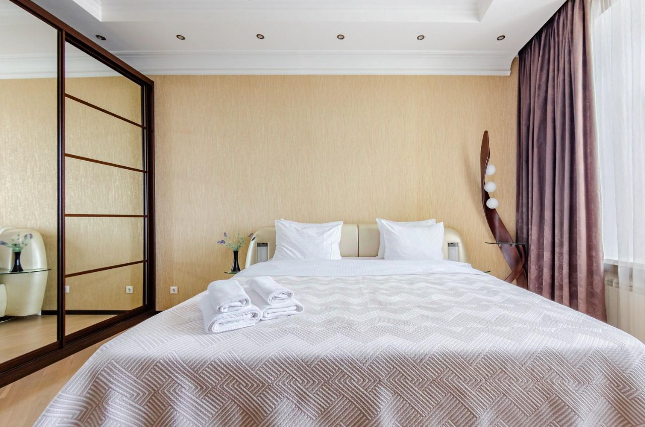 Лот 540195. Бонус коллегам! В элитном ЖК ''Триумф-Палас'' предлагается просторная четырехкомнатная квартира. Планировка: гостиная, кухня с обеденной зоной, 3 спальни, 2 совмещенных санузла, гардеробная. Квартира меблирована и оснащена всей необходимой для комфортного проживания бытовой техникой. Предусмотрены система кондиционирования, обогрев полов, бойлер. Вид из окон на Чапаевский сквер и фонтан во внутреннем дворе. Предоставляется машиноместо в подземном паркинге. Закрытая территория комплекса находится под круглосуточной охраной и видеонаблюдением. В ЖК находится фитнес-центр с бассейном, салон красоты, детский городок, мойка, химчистка. Удобная транспортная развязка. В квартире: Посудомоечная машина, Стиральная машина, Теплые полы, Кондиционер, Охрана, Интернет, Можно с детьми, Можно с животными, Гардеробная, Лифт, Телефон, Телевизор, WE SPEAK ENGLISH. PLEASE FEEL FREE TO CONTACT US. Номер объекта: #1/540195/13367