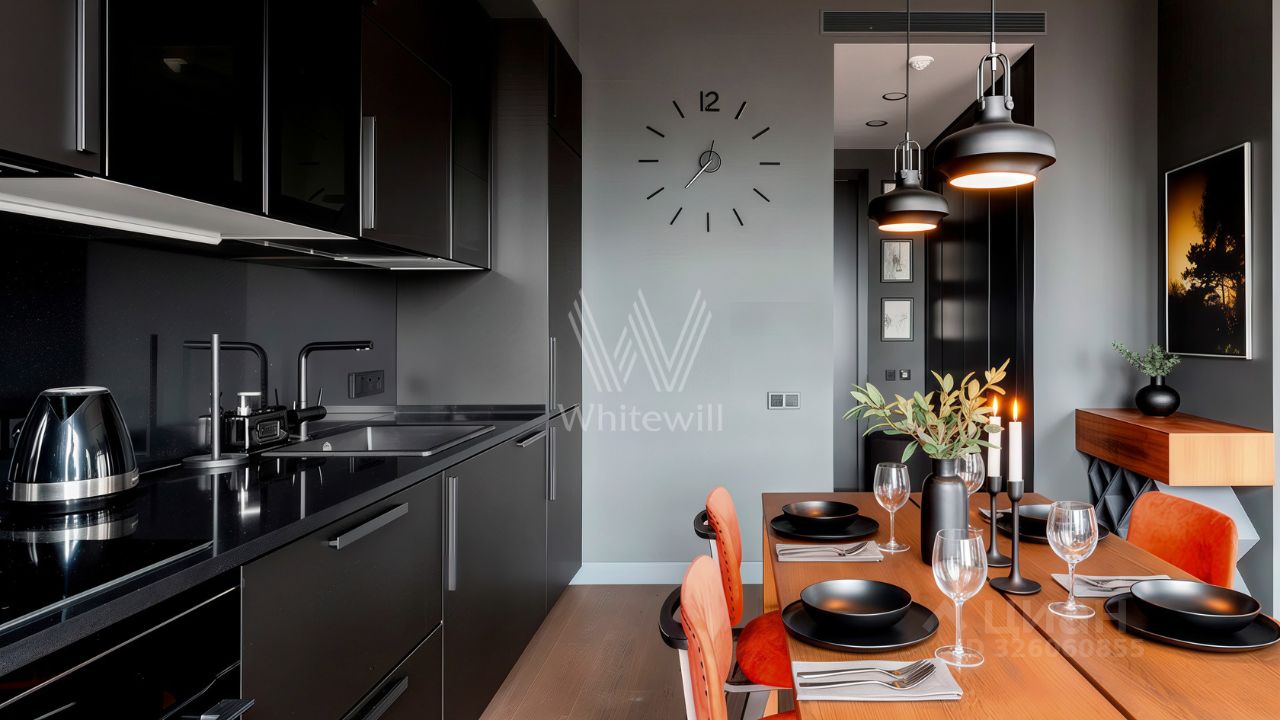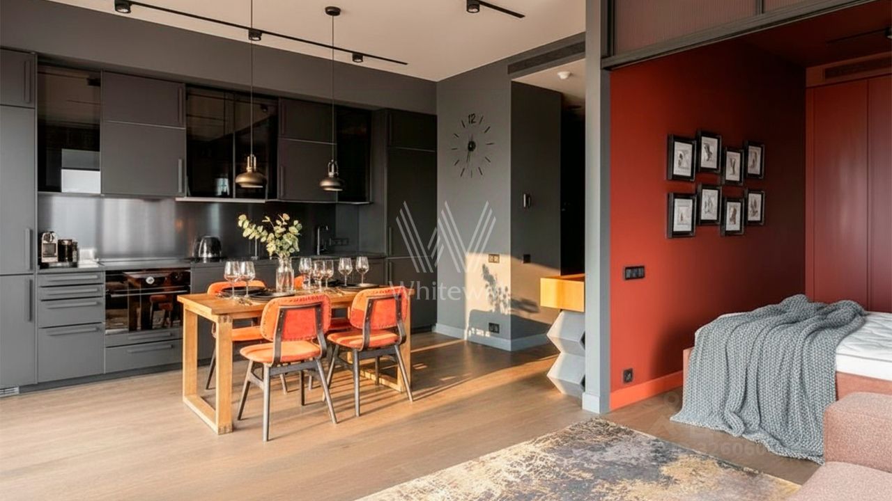 Просторная видовая студия площадью 50 м² в комплексе бизнес-класса ''Пресня Сити'' в Пресненском районе. Пространство наполнено естественным светом, проникающим сквозь широкоформатные окна. Здесь приятно любоваться огнями оживлённого города, устроившись на мягком диване вечером. Дизайн-проект квартиры был опубликован в международном журнале Elle Decor. Глубокие оттенки графита и угля придают интерьеру благородство, а винно-терракотовые и коричневые акценты добавляют тепла и уюта. Для вашего комфортного проживания установлена вся необходимая мебель и техника, включая кондиционеры. Планировка включает кухонную зону, лаунж у окна, зону спальни, оформленную стеклянными перегородками и санузел с душевой кабиной. Главное о доме. ''Пресня Сити'' — три башни бизнес-класса по 44 этажа в неоклассическом стиле. Фасады облицованы клинкерной плиткой с градиентом от терракотового у основания до светло-кофейного на верхних уровнях. Лобби каждой башни отражает стихию: огонь с камином и красными акцентами, вода с глубокими синими тонами и земля с зелёными мотивами. Для жителей открыты фитнес-клуб, spa, супермаркет, кафе, детский сад и центр раннего развития. Дворы оформлены по проекту BuroMoscow: прогулочные аллеи, детские и спортивные площадки, лаунж-зоны в зелени. Главное о локации. ''Пресня Сити'' — три башни бизнес-класса по 44 этажа в неоклассическом стиле. Фасады облицованы клинкерной плиткой с градиентом от терракотового у основания до светло-кофейного на верхних уровнях. Лобби каждой башни отражает стихию: огонь с камином и красными акцентами, вода с глубокими синими тонами и земля с зелёными мотивами. Для жителей открыты фитнес-клуб, spa, супермаркет, кафе, детский сад и центр раннего развития. Дворы оформлены по проекту BuroMoscow: прогулочные аллеи, детские и спортивные площадки, лаунж-зоны в зелени. Комментарий эксперта. Меня зовут Ольга Метелёва — брокер компании Whitewill. Я отвечаю за аренду этого лота. Свяжитесь со мной, чтобы получить расширенную презентацию, больше фотографий или договориться о просмотре. Могу провести экскурсию по локации и познакомить вас с этим домом. ID 4 444.