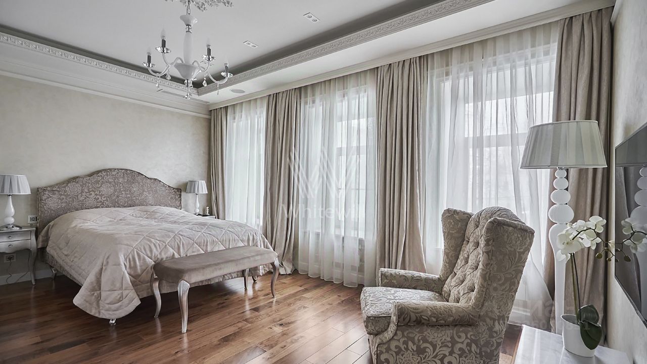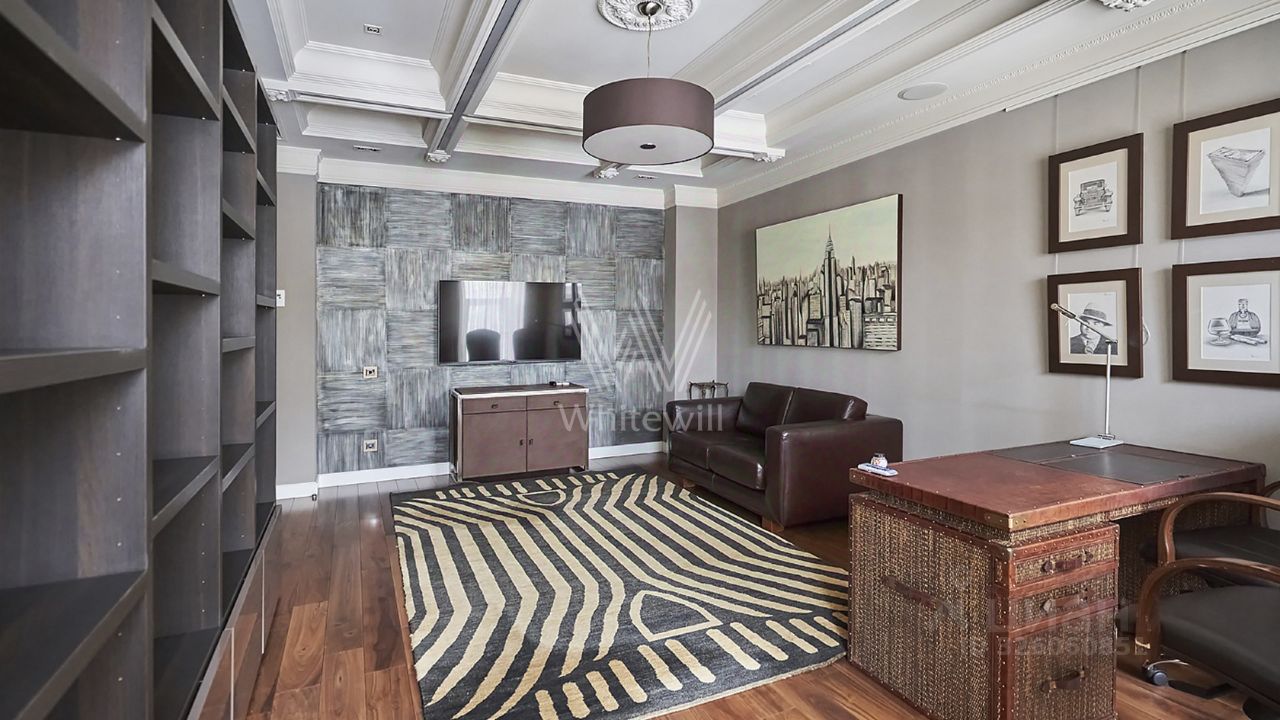 Уютная квартира с 2-мя спальнями общей площадью 125 м² в клубном доме недалеко от Патриарших прудов. Выполнен ремонт в классическом стиле, продуманы различные сценарии освещения. Квартира укомплектована мебелью и техникой для вашего комфортного проживания, интерьер дополняют картины. Планировка включает гостиную, кухню-столовую с лоджией, 2 спальни, 2 ванной комнаты, сауна,. Одна из спален может быть использована как кабинет, детская или гостевая комната.