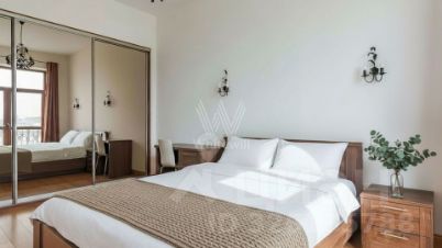 Лот 1000273. Полина Брегель.Стильная 3-комнатная квартира в ЖК премиум класса Victory Park Residences. Функциональная планировка: совмещенная с гостиной кухня, 2 спальни, у каждой из которых свой санузел, гостевой санузел, постирочная комната, балкон. Общая площадь: 126 кв.м. Потолки 3,2 м. Ремонт выполнен в уникальном авторском стиле с использованием мрамора и других высококачественных материалов. Квартира полностью обставлена мебелью, кроме одной спальни, которую собственник готов мебелировать по запросу будущего арендатора, а также оборудована всей необходимой техникой: телевизор, посудомоечная машина, холодильник, приточно-вытяжная система вентиляции и кондиционирования, стиральная и сушильная машины, система теплого пола, электрокарнизы, высокоскоростной интернет. Окна выходят в тихий двор. Территория дома огорожена и круглосуточно охраняется. В подземном паркинге возможно арендовать 2 машиноместа за дополнительную плату. Возможна оплата по безналичному расчету, а также аренда с маленькими детьми.Без комиссии для арендатора.Бонус партнерам 50%.Есть презентации в pdf на русском или английском для партнеров.Предоплата за 1 месяцЗалог 650 000 ₽