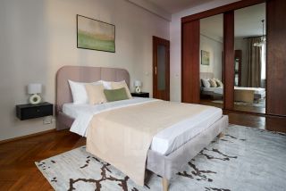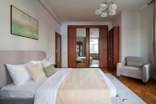 Как сказал один из наших гостей: ''В эту квартиру невозможно не влюбиться! В нее хочется возвращаться снова и снова!''. Расположенная в Сталинском доме, с высотой потолков более 3,5 метров, с просторной стильной гостиной, с современным интерьером - квартира очарует Вас, как только Вы переступите ее порог.Еще один очевидный плюс этой квартиры - близость к метро Маяковская (3 минуты пешком). Спальные комнаты оснащены двуспальными кроватями, платяными шкафами, комодом, светильниками, а также плотными портьерами. Гостиная совмещена с кухней, визуально разделена на обеденную зону и зону отдыха. Здесь Вы найдете ЖК телевизор с функцией SMART TV, раскладной диван, настольные игры. Балкон прилегает к гостиной. Окна выходят в тихий двор. Кухня оборудована по последнему слову техники: холодильник, микроволновая печь, электрический чайник, посудомоечная машина, электрический чайник, вытяжка, варочная панель и духовой шкаф. За пару минут вы сможете дойти до двух станций метро или до Белорусского вокзала. Всего через одну станцию метро -и вы окажетесь возле Кремля и Красной площади, увидите Успенский и Казанский соборы, Оружейную палату и Храм Василия Блаженного. На Триумфальной площади Вы найдете памятник В. Маяковскому. Рядом расположен Концертный зал им. П.И. Чайковского, Музей современного искусства, Музей ''Булгаковский Дом''. Вечером советуем заглянуть в ресторан Шпатен-Хаус и попробовать отменную свиную рульку или в ресторан ''Бавариус'' напротив концертного зала им. Чайковского. В соседнем доме расположен продуктовый магазин Магнолия.Квартира по данной стоимости сдается от 3х месяцев. Срок аренды до апреля 2026 года.Предоплата за 1 месяцЗалог 124 500 ₽