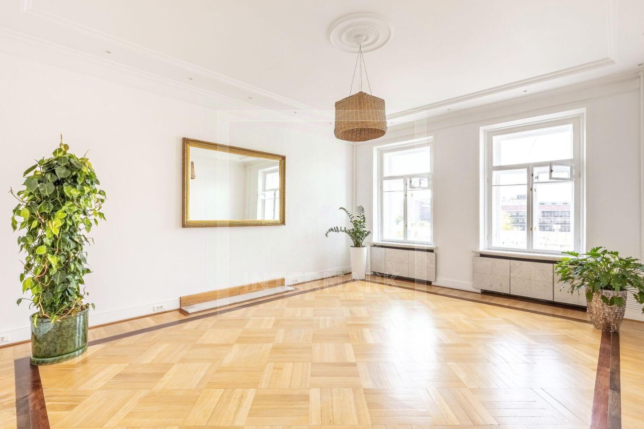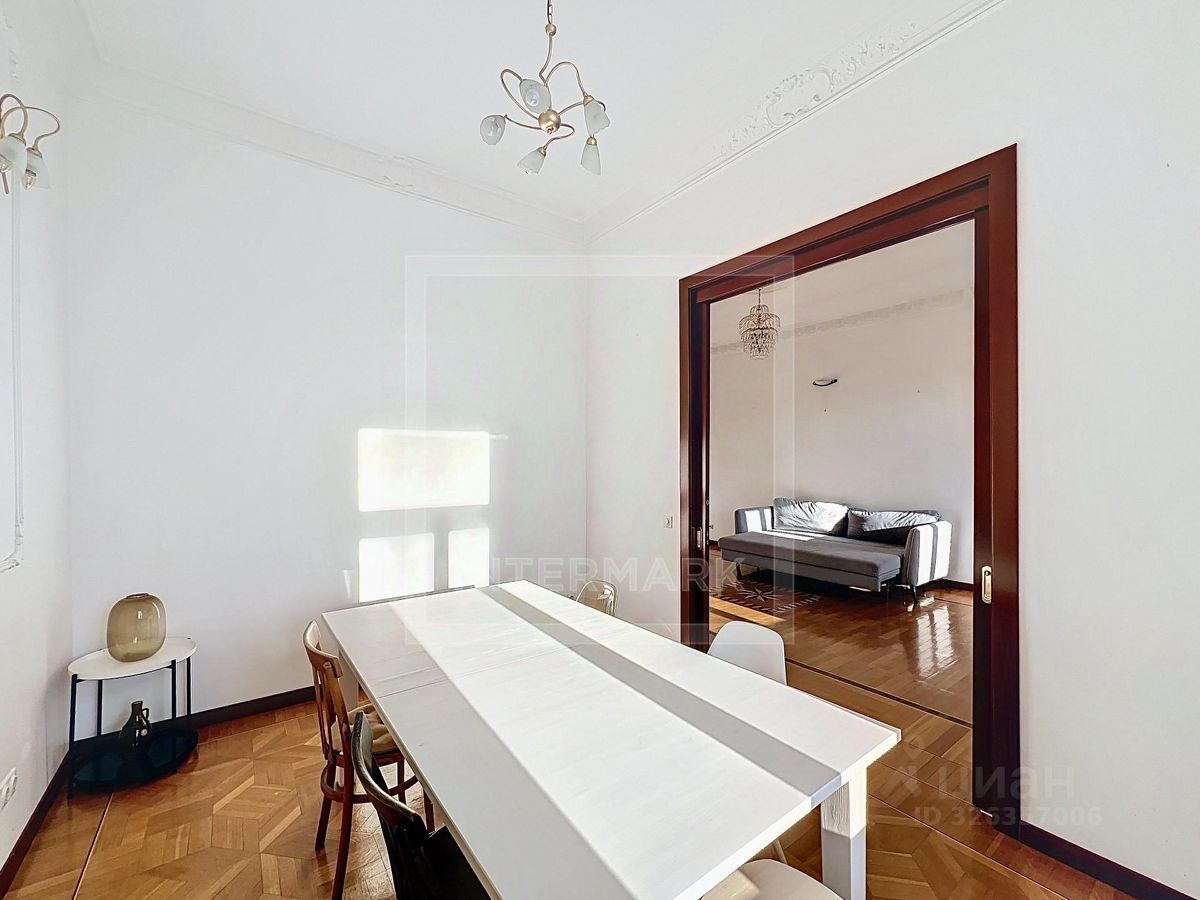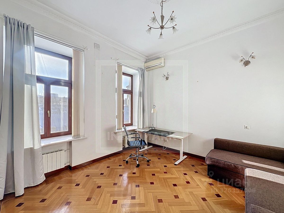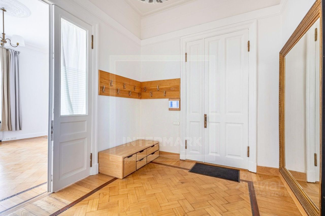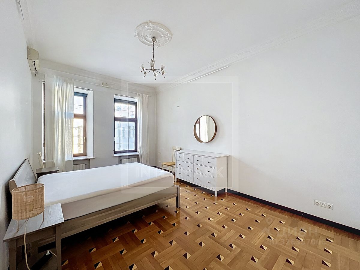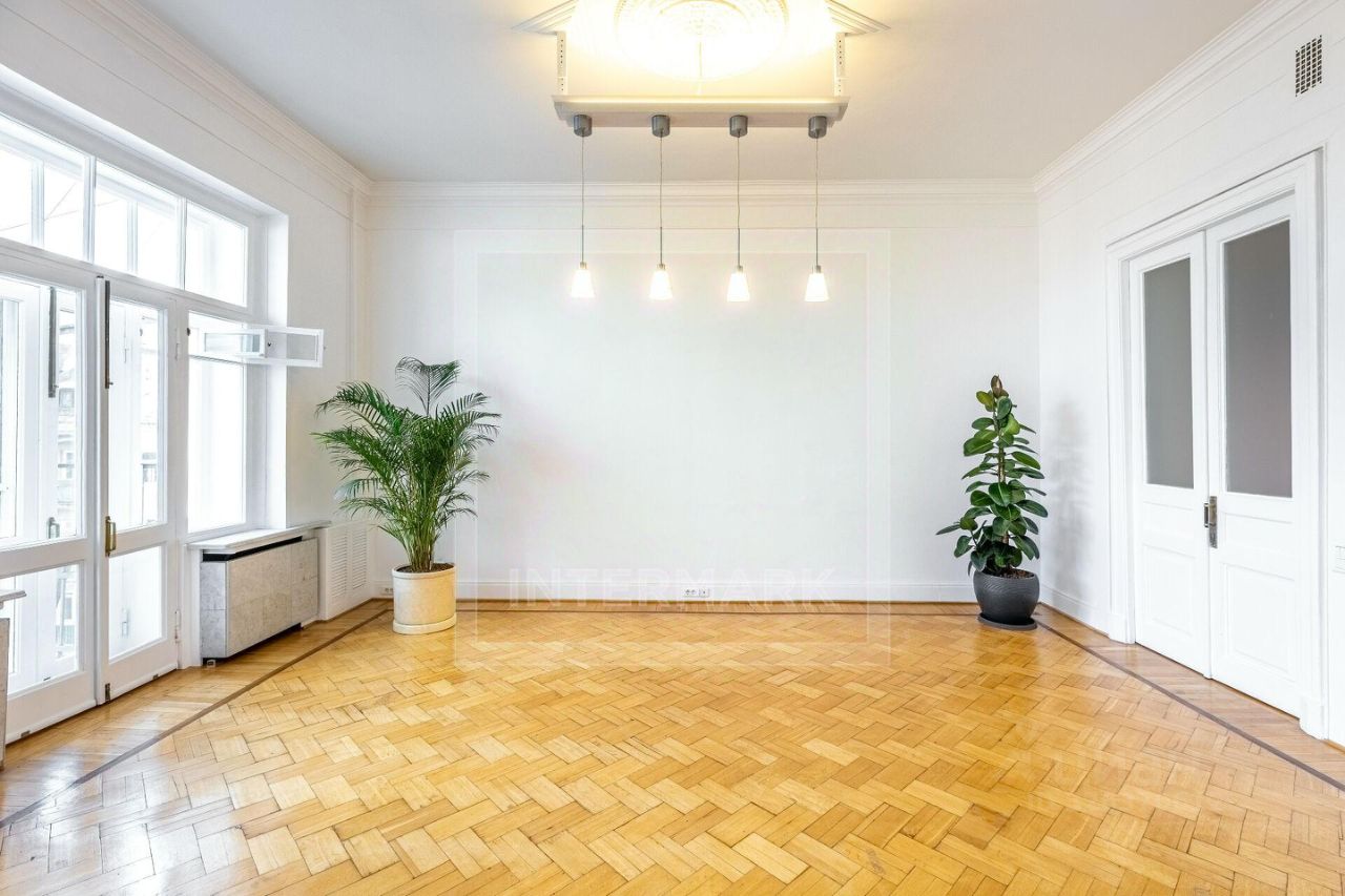 ID 38545: С марта предлагается в аренду светлая 6-комнатная квартира в дореволюционном доме на Чистых прудах. Удобная планировка: кухня-столовая с балконом, гостиная, кабинет, 3 спальни, холл-прихожая, ванная комната с ванной и душевой кабиной, отдельная душевая комната, гостевой туалет. Высота потолков 4 метра, полностью оборудована, включая 2 большие гардеробные. Квартира после полной профессиональной реставрации элегантная роскошь стиля начала 20 века: дубовые паркетные полы с инкрустацией красным и черным деревом, золотистой мозаикой, отделка мрамором и аутентичная латунная фурнитура. Кухня оборудована Side-by-side холодильником и морозильником Liebherr с генератором льда, индукционной и газовой плитой, духовой и СВЧ печами Neff, посудомоечной машиной Miele, измельчителем кухонных отходов, стирально-сушильным комплексом из двух машин Miele, вытяжкой Gaggenau, многоступеньчатой системой фильтрации питьевой воды. Парковка во дворе, ворота на пульте. В шаговой доступности расположены множество кафе, ресторанов, театров и красивых и уютных парков. Please feel free to contact Intermark Real Estate to get detailed information or to set up a viewing! 24/7 help desk service with English-speaking operators В квартире: Парковка, Частично меблированная, Посудомоечная машина, Стиральная машина, Сушильная машина, Душевая кабина, Спутниковое/кабельное телевидение, Видеонаблюдение, Интернет, Балкон, Вид на улицу, Европланировка, Ванна, Интерьер в классическом стиле, Гардеробная комната, Кухонная мебель, Окна на улицу, Окна во двор