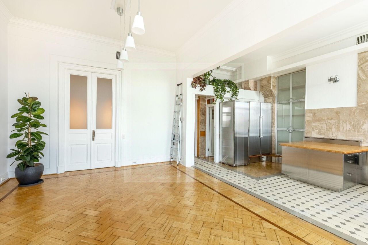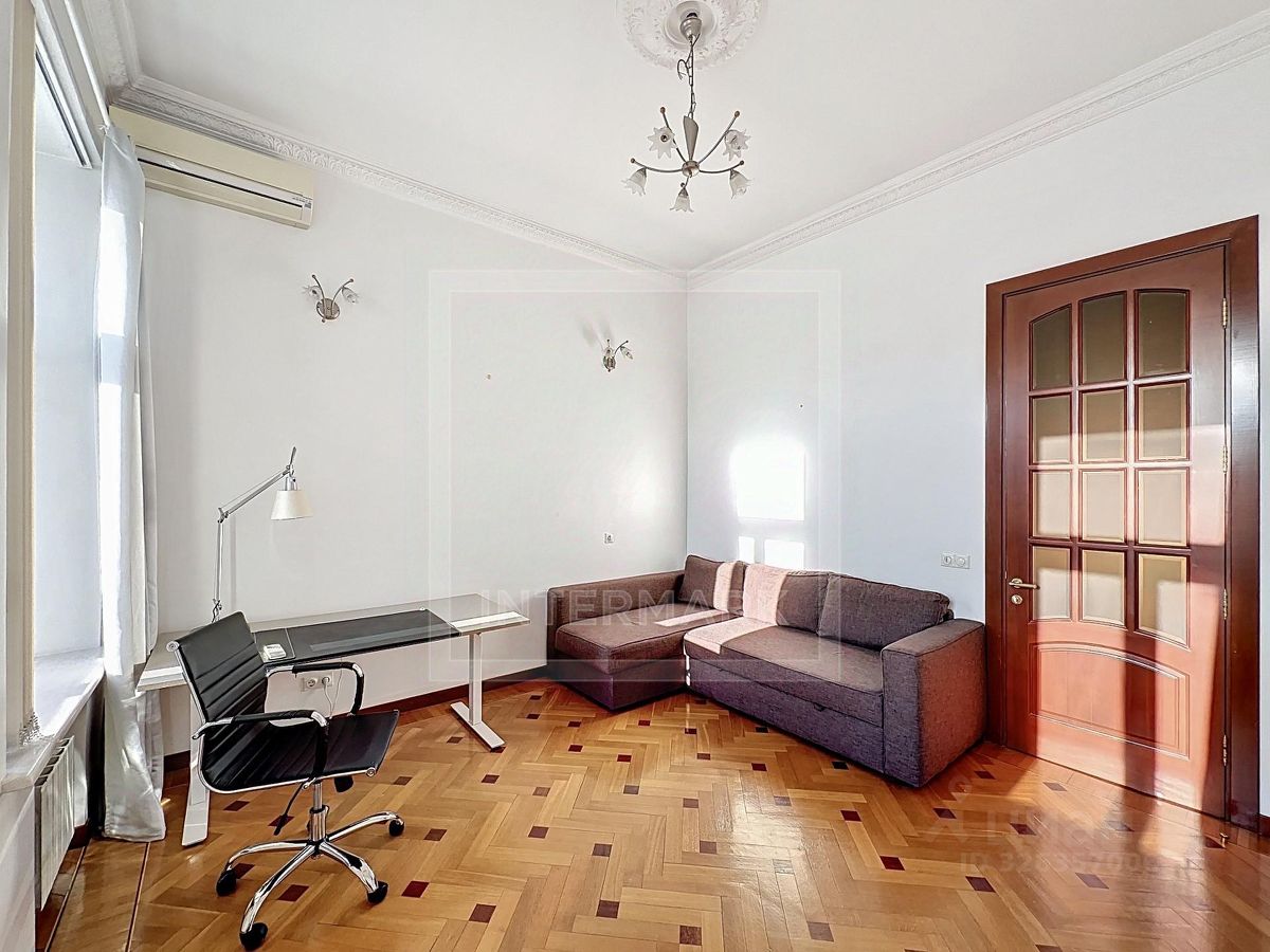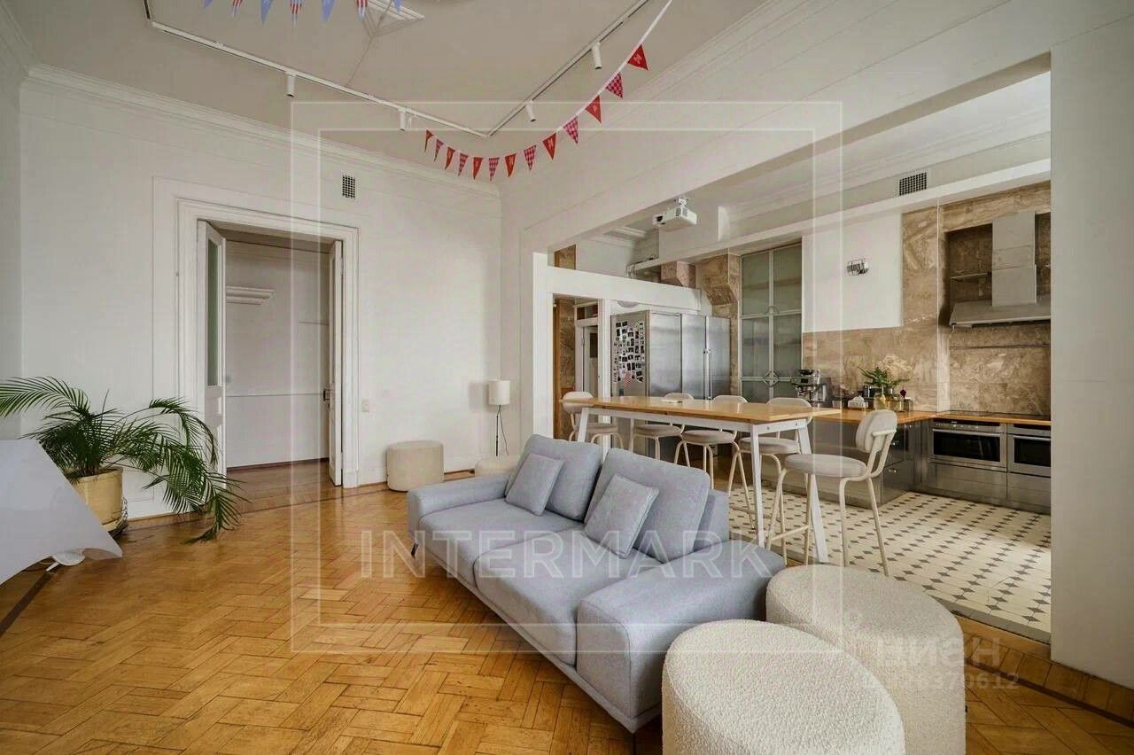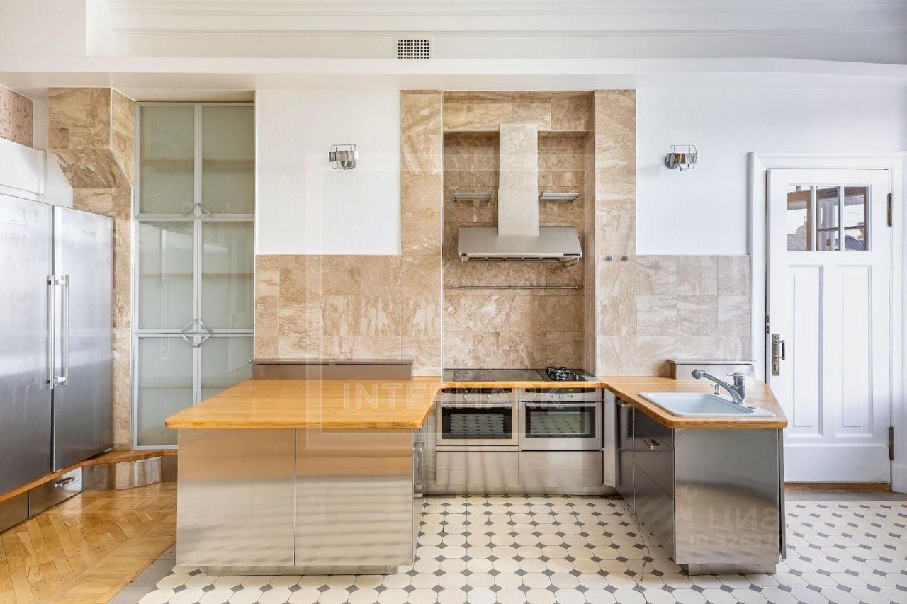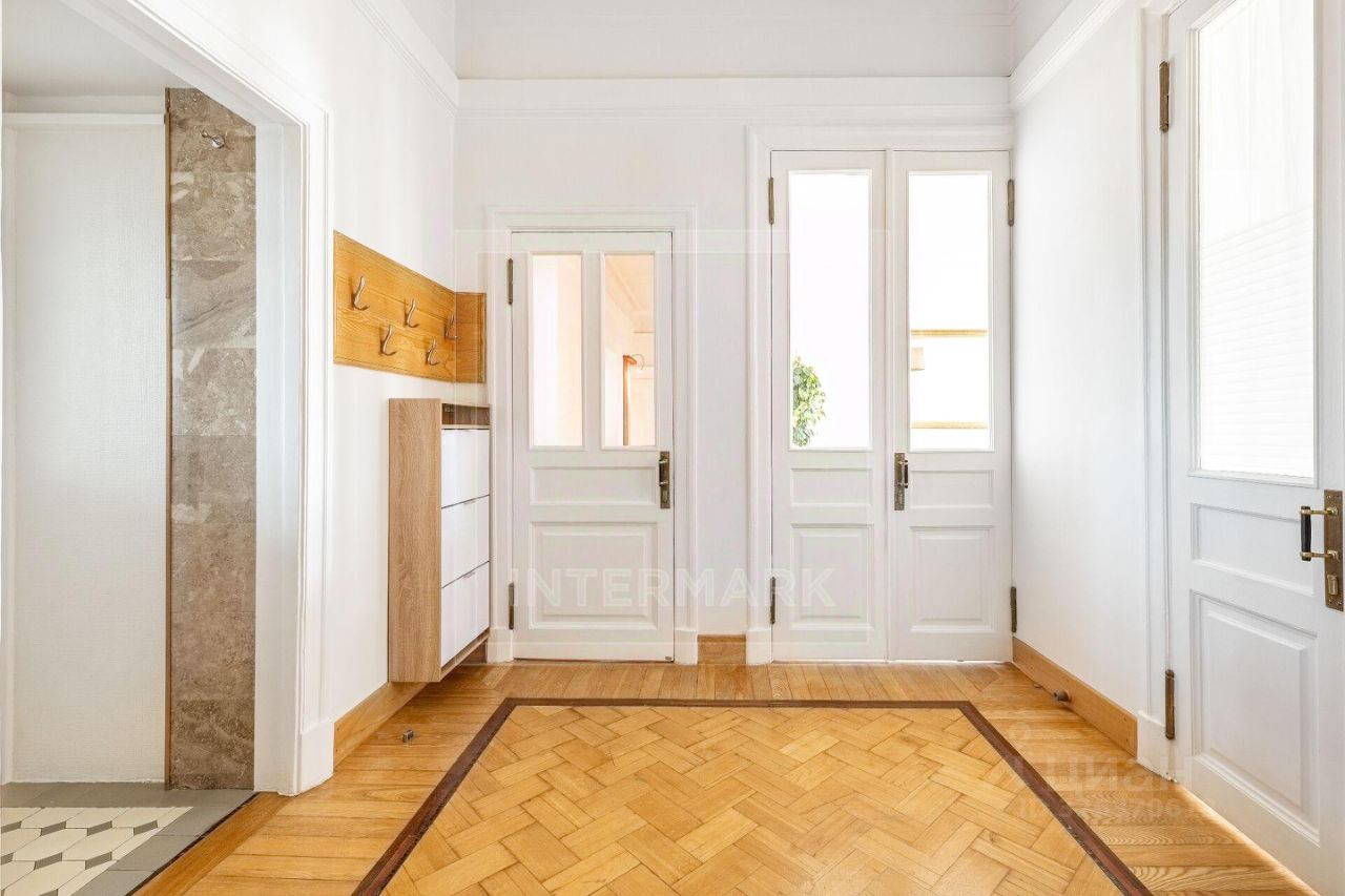 ID 38545: С марта предлагается в аренду светлая 6-комнатная квартира в дореволюционном доме на Чистых прудах. Удобная планировка: кухня-столовая с балконом, гостиная, кабинет, 3 спальни, холл-прихожая, ванная комната с ванной и душевой кабиной, отдельная душевая комната, гостевой туалет. Высота потолков 4 метра, полностью оборудована, включая 2 большие гардеробные. Квартира после полной профессиональной реставрации элегантная роскошь стиля начала 20 века: дубовые паркетные полы с инкрустацией красным и черным деревом, золотистой мозаикой, отделка мрамором и аутентичная латунная фурнитура. Кухня оборудована Side-by-side холодильником и морозильником Liebherr с генератором льда, индукционной и газовой плитой, духовой и СВЧ печами Neff, посудомоечной машиной Miele, измельчителем кухонных отходов, стирально-сушильным комплексом из двух машин Miele, вытяжкой Gaggenau, многоступеньчатой системой фильтрации питьевой воды. Парковка во дворе, ворота на пульте. В шаговой доступности расположены множество кафе, ресторанов, театров и красивых и уютных парков. Please feel free to contact Intermark Real Estate to get detailed information or to set up a viewing! 24/7 help desk service with English-speaking operators В квартире: Парковка, Частично меблированная, Посудомоечная машина, Стиральная машина, Сушильная машина, Душевая кабина, Спутниковое/кабельное телевидение, Видеонаблюдение, Интернет, Балкон, Вид на улицу, Европланировка, Ванна, Интерьер в классическом стиле, Гардеробная комната, Кухонная мебель, Окна на улицу, Окна во двор