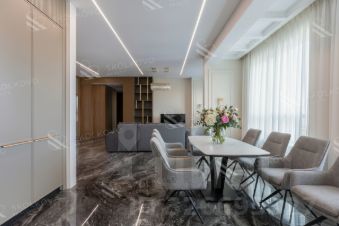 ID 45151: Бонус коллегам 50%. Просторная 5-комнатная квартира в комплексе премиум-класса ''Садовые кварталы''. Выполнен новый ремонт в стиле ''неоклассика'' с использованием натуральных материалов: массив, керамогранит, мрамор и оникс. Приточно-вытяжная система вентиляции фирмы Daikin. Интерьеры наполнены мебелью Casa Cavio, Seven sedie, Carpanese, техника Kuppersbusch, Liebherr, сантехника Duravit, двери Ghizzi & Benatti, свет LArte Luce. Общая площадь 300 м2. Спланирована кухня-столовая-гостиная с электрокамином, 2 мастер-спальни с собственными санузлами и гардеробными, две спальни с гардеробными, гардеробная для верхней одежды, гостевой санузел, постирочная. Благодаря высоте потолков 3,3 метра и панорамному остеклению, пространство в квартире наполнено светом и теплом, из окон открывается в тихий дом. Два машино-места в подземном паркинге включены в стоимость. Без комиссии для арендаторовРаботаем с партнерамиДействуем в интересах клиентов.Please feel free to contact Intermark Real Estate to get detailed information or to set up a viewing! 24/7 help desk service with English-speaking operators В квартире: Полностью меблированная, М/место в подземном паркинге, Посудомоечная машина, Стиральная машина, Сушильная машина, Бойлер, Душевая кабина, Теплые полы, Спутниковое/кабельное телевидение, Видеонаблюдение, Охрана, Интернет, Видовая квартира, Можно с детьми, Можно с животными, Изолированная кухня, Европланировка, Ванна, Интерьер в современном стиле, Консьерж, Сплит-система, Гардеробная, Лифт, Мебель в комнатах, Телефон, Телевизор, Мебель на кухне, Окна на улицу, Окна во дворПредоплата за 1 месяцЗалог 2 950 000 ₽