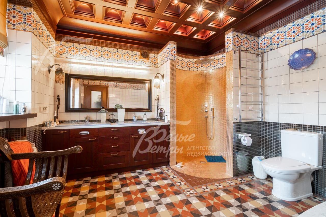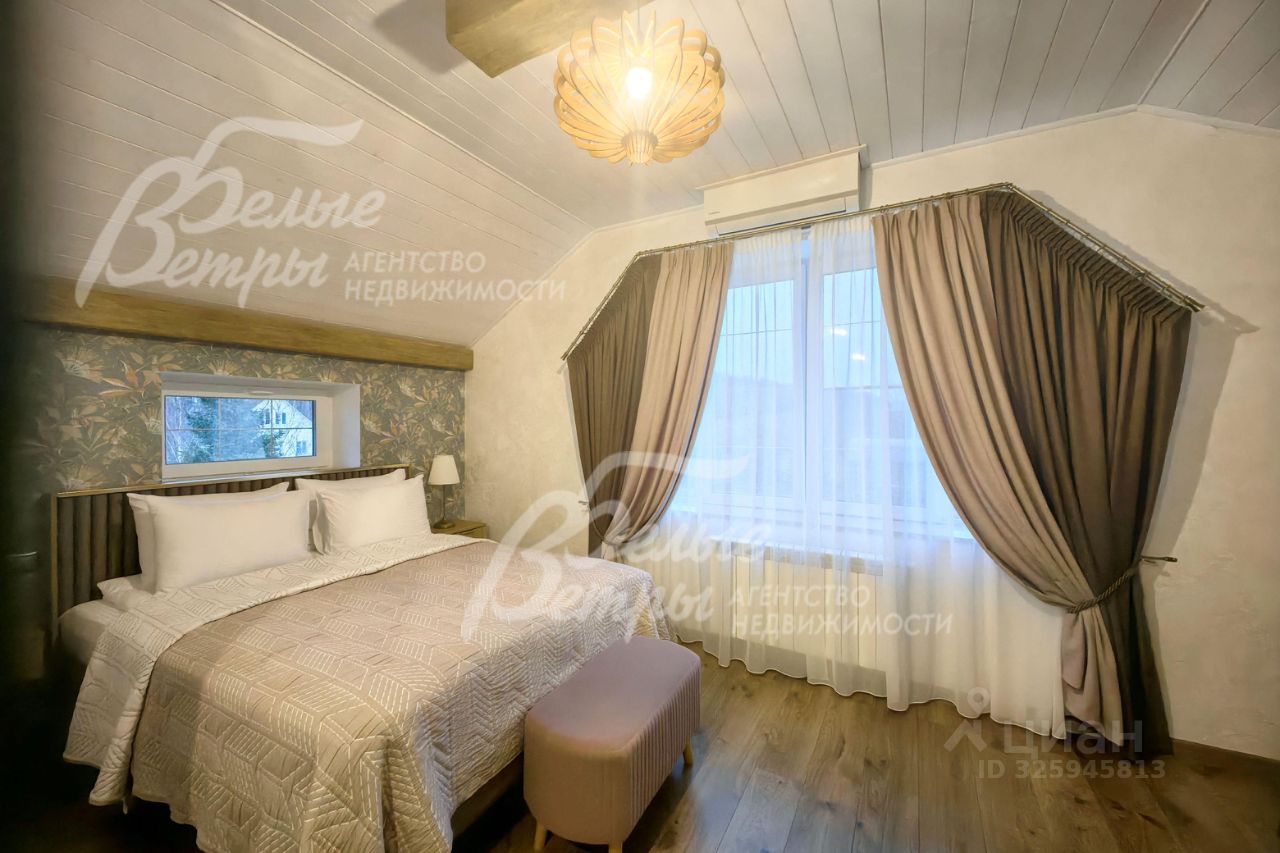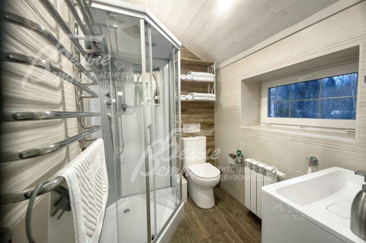 Код объекта в БД Агентства: 553-001. Комплекс новых, полностью меблированных и оборудованных строений в единой стилистике шале: Основной жилой дом, гостевой дом, банный комплекс-спортзал и просторная беседка-барбекю на большую компанию. Стильная отделка из материалов высокого качества. В основном доме 5 спален и 3 санузла. Гостевой дом с двумя спальнями идеально подходит для гостей или старшего поколения семьи. В оздоровительном комплексе - комната отдыха, парная, джакузи, массажное кресло, тренажерный зал с тренажерами. Ухоженный участок 15 соток с ландшафтом в тихом поселке Новой Москвы. Год постройки: 2025. Материал стен: 1 этаж - пеноблок, 2 этаж - оцилиндрованное бревно. Облицовка стен: декоративная штукатурка с отделкой камнем. Стадия готовности: меблирован. Описание внутренней отделки: стильная отделка в современные пастельных тонах: стены 2-го этажа - бревно и обои, высокие потолки, много света, ярких элементов интерьера. Окна второго этажа в доме панорамные и мансардные. В санузлах - плитка до потолка и бревно. Двери филенчатые белого цвета. Качественная стильная сантехника, большие душевые кабины с трапами.. Инженерное обеспечение: газовый котел BAXI, бойлер AQUASTIC на 180 л, многоступенчатая система очистки воды. Вентиляция естественная, сплит системы во всех помещениях. ТВ от проводного интернета (оптика). Оборудована пожарная сигнализация, датчики движения в доме и камеры по периметру участка.. Мебель, оборудование: Мебель подобрана в единой стилистике: мягкая мебель в гостиной (диван и кресла), столовый гарнитур на 8 персон (стол и мягкие стулья). В спальнях - большие и высокие двуспальные кровати с мягким изголовьем, гардеробные шкафы, туалетные столики. Кухонный гарнитур с островом и холодильником Hisense большого объема. Встраиваемая техника: духовой шкаф, индукционная варочная плита, вытяжка и посудомоечная машина от производителя Hansa. Стиральная машина - beko. Во всех помещениях шторы, тюль, люстры и другие осветительные приборы.. Тип участка: с деревьями и ландшафтом. Благоустройство участка: газон, по периметру высажены туи, организовано освещение.. Дополнительные строения: - Гостевой дом 90 кв.м, двухэтажный шале из газобетона, в единой стилистике с основным домом. На 1-ом этаже: кухня-столовая-гостиная 23 кв.м, собственная котельная. На 2ом этаже: спальни 28.6 кв.м и 11 кв.м, санузел 3.4 кв.м с душем. Стильная отделка в современных пастельных тонах, в стиле минимализма. Дом оборудован все необходимой бытовой техникой и мебелью. - Отдельно стоящий отапливаемый дом 60 кв.м: на первом этаже сауна с парогенератором, комната с джакузи (надувной бассейн с гидромассажем) и душем, комната отдыха. На втором этаже спортзал с различными тренажерами и массажным креслом. - Беседка-барбекю 24 кв.м с большим столом, двумя мангалами и мойдодыром.. Коммуникации: газ - есть (магистральный), э/э - есть (40 кВт), водопровод - индивид. скважина, канализация - автономная (септика), охрана - есть (КПП).