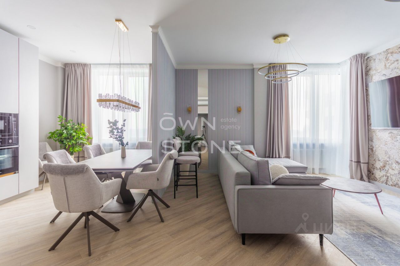 ID 40413. Стильная 4-комнатная квартира в ЖК ''The Mostman''. Выполнен новый эксклюзивный ремонт с использованием высококачественных материалов и оборудования. Квартира частично меблирована. Приобретение дополнительной мебели обсуждается. Кухня полностью оборудована немецкой техникой премиум-класса. В квартире проведена система увлажнения воздуха и кондиционирование. Общая площадь: 129 кв. м. Планировка: прихожая с встроенными шкафами, гостиная-столовая, изолированная кухня со столом для завтраков, детская комната с 3 окнами, главная спальня с встроенным шкафом и ванной комнатой, дополнительная спальня или кабинет, гостевая ванная комната, постирочная. Дополнительно возможно арендовать машино-место и кладовку в гараже. Можно с детьми. Питомцы обсуждаются. Please feel free to contact Intermark Real Estate to get detailed information or to set up a viewing! 24/7 help desk service with English-speaking operators В квартире: М/место в подземном паркинге, Частично меблированная, Готовы меблировать, Посудомоечная машина, Стиральная машина, Бойлер, Душевая кабина, Теплые полы, Кондиционер, Видеонаблюдение, Охрана, Можно с детьми, Вид на улицу, Изолированная кухня, Интерьер в современном стиле, Консьерж, Ремонт - дизайнерский, Кухонная мебель, Окна на улицу, Окна во двор