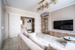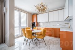 Сдержанная гармония модерна середины века — символ вкуса, проверенного временем. Итальянская мебель, мягкий свет, виды на Москву с высотками на горизонте — всё обещает размеренность и уют в тихом уголке между Смоленским бульваром и Плющихой.Эстетика середины ХХ века читается в каждой детали: спокойный фон, характерная мебель на ножках, насыщенное благородное дерево, модернистская живопись. Итальянская мебель Ceccotti и Minotti напоминает о 1950-х, когда формы были чёткими, а качество — безупречным.Атмосфера квартиры дарит спокойствие и безмятежность. Здесь хочется листать журналы и слушать пластинки, потягивать вермут за барной стойкой или ждать гостей на кофе с бискотти под фильм с Марчелло Мастроянни. С полок смотрят семейные фотографии и книги о приключениях Джельсомино и Пиноккио, по каменной столешнице кофейного стола рассыпано домино, а диван готов принять большую компанию, чтобы скоротать вечер за шарадами.Из окон открывается панорама Москвы: две сталинские высотки — МГУ и гостиница ''Украина'', на горизонте сияют башни Москва-Сити, вблизи видны старые московские особняки. Ласковые солнечные лучи разливаются по квартире, а жёлтое стекло люстры пускает тёплые блики по гостиной. Кухня терракотового оттенка с деревянными элементами создана для неспешных домашних ритуалов: паста с томатами и базиликом или нежное ризотто с грибами — и бокал тосканского кьянти. А после — прогулка с собакой до сквера Девичьего поля или семейная вылазка к старым переулкам Арбата.Главное об апартаментах: четырнадцатый этаж, 196 метров, кухня-гостиная, мастер-спальня с собственной ванной комнатой и двумя гардеробными, детская спальня с ванной комнатой, кабинет или третья спальня с застеклённой лоджией, гостевой санузел с постирочной. Мебель Ceccotti и Minotti, системы хранения Poliform, сантехника Villeroy & Boch, техника Miele, кондиционеры. В санузлах итальянская мозаика Sicis. В стоимость включены два машино-места в подземном паркинге. Можно с животными.Главное о доме. ''Смоленская Застава'' — премиальный комплекс из девяти секций в кирпичной палитре на Ружейном переулке. Фасады собирают ритм строгих линий, а верхние этажи заняты пентхаусами с террасами и панорамами центра. Входные группы напоминают клубный формат: высокий потолок, натуральные материалы, мягкий свет и стойки ресепшн. Во дворе устроены аллеи и детская площадка, территория закрыта от машин. На первых этажах открыты кафе, салон и повседневные сервисы. Автомобили размещаются в двухуровневом подземном паркинге с прямым доступом из лифта.Главное о локации. Комплекс стоит на Ружейном переулке, в самом сердце Хамовников. До сквера Девичьего поля всего 10 минут пешком, а за четверть часа можно дойти до театра имени Вахтангова. В повседневной жизни помогают ''Азбука вкуса'' и торговый центр ''Смоленский пассаж'', а для прогулок и спорта рядом набережная Москвы-реки. Для семей доступны гимназия 1521 и Brosko School, а в пределах 20 минут ходьбы — школа 1529 и МПГУ. Метро ''Смоленская'' в 10 минутах, доПредоплата за 1 месяцЗалог 850 000 ₽