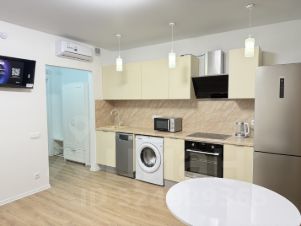 АРЕНДА ВПЕРВЫЕ !!!Сдается на длительный срок уютная евродвушка в прекрасном районе Чертаново Южное!Квартира изумительная, пространство продумано с учетом всех пожеланий современного человека.Она влюбляет в себя сразу как только открывается дверь! Идеальное место для жизни и творчества! Расположение:- Всего 12 минут ходьбы до метро ''Улица академика Янгеля'' и 5 минут до МЦД-2 ''Красный строитель''. - Рядом живописный Покровский парк, усадьба Царицыно, Кировоградские и Варшавские пруды. - В шаговой доступности множество кафе, фитнес-центров, досуговых учреждений (ФОК, библиотеки, ДЮЦ для детей), поликлиника и поликлиника.ру. Квартира:- Уникальное дизайнерское решение в стиле европейского минимализма. - Полностью укомплектована современной техникой: два телевизора, посудомоечная машина, варочная панель, духовой шкаф, микроволновая печь, холодильник, чайник, пылесос, кондиционер, встроенный фильтр для воды - Много мест для хранения: два комода, два шкафа для вещей, большой шкаф в ванной, ниша в кровати. - Спальных мест 4: два в одной комнате и два — в другой (диван раскладывается).Дополнительная информация: Квартира рассчитана на проживание 1-2 человек. С детьми — можно, с животными — нет.Залог можно разбить на 2 месяца.Предоплата за 1 месяцЗалог 75 000 ₽