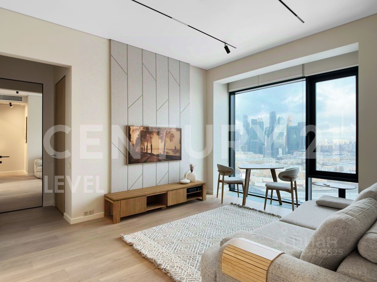 Id 57182. Сдаётся НОВАЯ 2х комнатная квартира с прекрасным видом на Москву - Сити. Отдельная спальня , гардероб и большая кухня, совмещенная с гостиной, ванная комната, кондиционеры в двух комнатах, раскладной диван, на кухне духовая печь Bosch последнего поколения, варочная панель, вытяжка, современная посудомоечная машина Bosch, холодильник Liebherr, TВ, стиральная машина с функцией сушки Полы из натурального дерева. Высокие потолки 3 метра. Отличное расположение, минута до ТТК, до садового кольца 8 минут и 5 минут от Москва-Сити, также Кутузовский проспект в пяти минутах В наличии английский сад, прекрасные беллбои , на 41 этаже зона барбекю и смотровая площадка .
