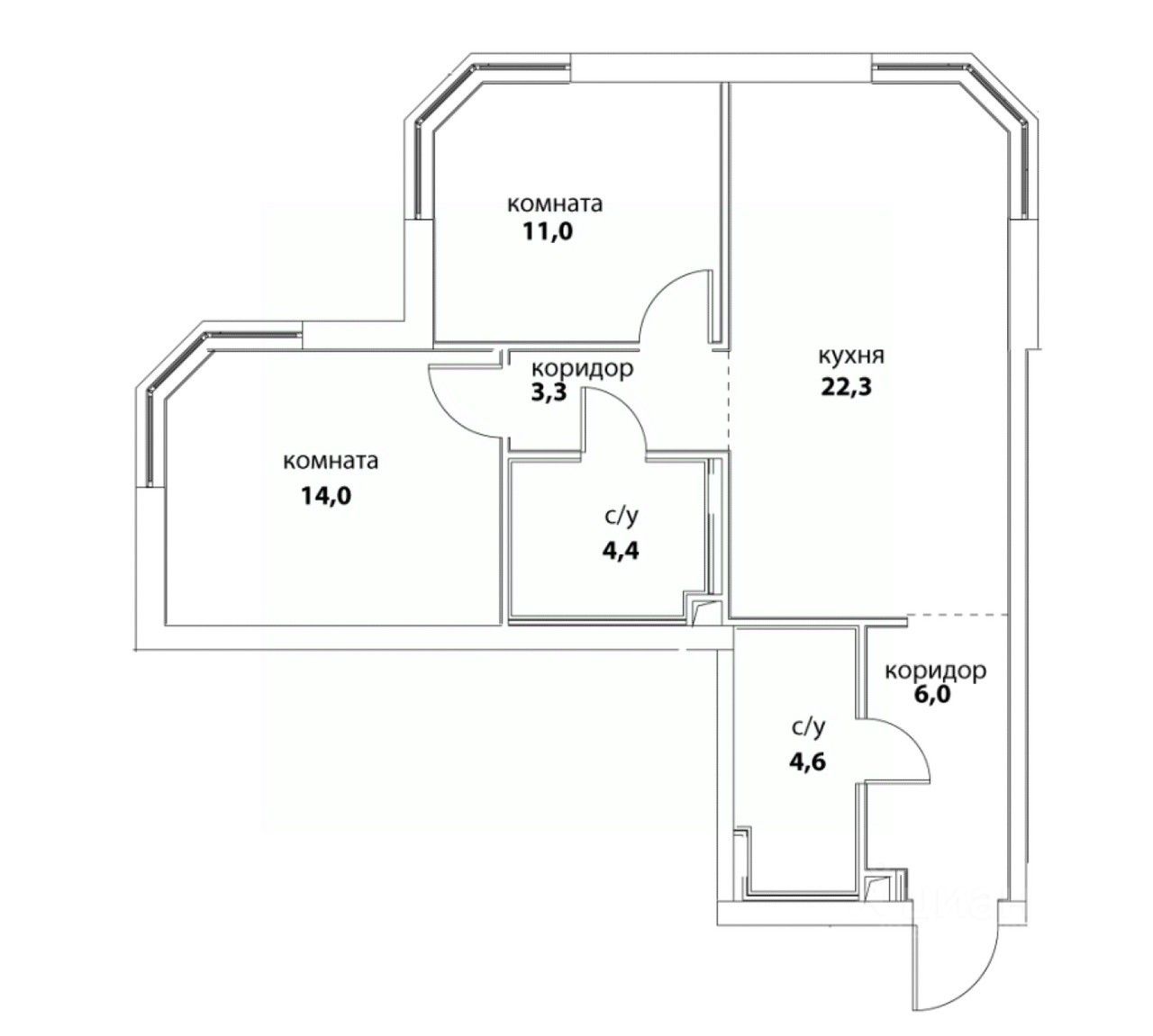57 м² · Этаж 14 из 14