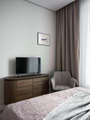 Апартаменты с одной спальней общей площадью 43 квадратных метра находятся в комплексе ''Чкалов''. Данный объект расположен на шестнадцатом этаже в ''Башне А'' и предлагается с готовой дизайнерской отделкой. Панорамные окна дарят потрясающие закаты и виды на сверкающий небоскрёбами Москва-Сити, легендарный Кремль и живописный Дом на Котельнической набережной.Интерьер выполнен в минималистическом стиле известным лондонским дизайнером Мартином Хулбертом. Функциональная планировка включает кухню-гостиную, спальню, ванную комнату и холл. Имеется вся необходимая бытовая техника, в том числе посудомоечная машина, телевизор, стиральная машина. Приточно-вытяжная система вентиляции. Потрясающие виды на Москву!Комплекс ''Чкалов'' состоит из двух 21-этажных башен, выполненных в стиле нью-йоркских небоскрёбов с панорамным остеклением и белыми гранёными панелями из фибробетона. Проектированием занимался известный архитектор Сергей Чобан, основатель московского бюро Speech. Обе башни соединены четырёхэтажной торговой галереей с магазинами премиум-класса, ресторанами и фудкортом. На пятом этаже находится собственная инфраструктура с коворкингом, фитнес-центром, студиями йоги и пилатеса. С шестого по двадцать первый этажи располагаются апартаменты с панорамными видами. Жители могут воспользоваться выходом на зелёную террасу на крыше торгового центра.В комплексе предлагаются различные варианты жилья - от студий до трёхкомнатных квартир с дизайнерской отделкой от лондонской студии Martin Hulbert в двух цветовых решениях: ''Рассвет'' и ''Закат''. Инвесторам предлагается услуга сдачи недвижимости в аренду через премиальную управляющую компанию Sawatzky. Для обеспечения конфиденциальности жильцов предусмотрен отдельный вход со стороны, противоположной торговому центру. Подземный паркинг также разделён на две зоны: одна предназначена для посетителей торгового центра, другая - для жителей комплекса. Номер в базе: J26898Залог 200 000 ₽