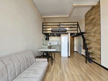 Сдается стильная квартира-лофт 35 м² в центре! Два уровня пространства и современности.*Представьте: просторная квартира с wow-эффектом! Высота потолков 4 метра создаёт ощущение свободы и воздуха, а двухъярусная планировка — это умное зонирование без лишних стен. Первый уровень: кухня-гостиная с полной кухонной техникой (холодильник, посудомойка, духовой шкаф, микроволновка, плита — всё новое и в идеале), кондиционер для комфортного климата круглый год, телевизор распакуют и установят специально для Вас. Поднимаетесь по стильной лестнице на второй ярус — там спальня с гардеробной (хватит места для всей семьи!). Квартира с минимальным набором удобной мебели — холст, где вы сможете создать интерьер своей мечты, по вкусу и с душой.Предоплата за 1 месяцЗалог 90 000 ₽