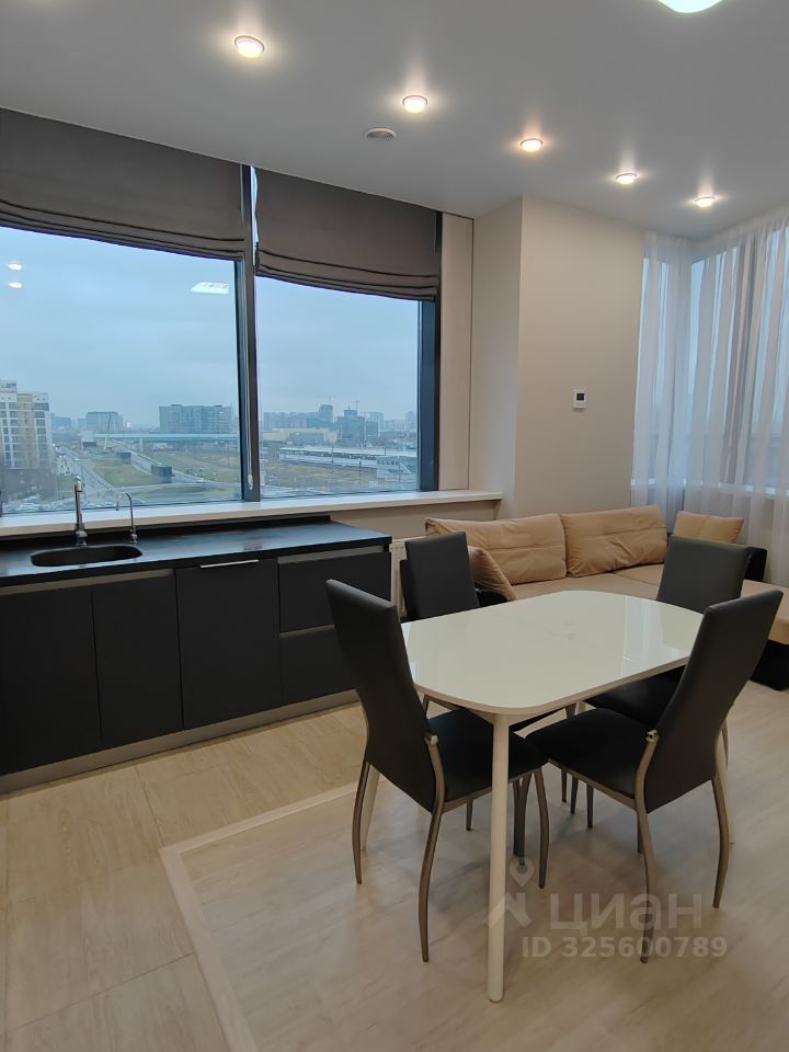 Отличная, видовая квартира на 43-м этаже, высота потолков - 3м. Состоит из кухни-гостиной 25,4м, спальни - 15,5м2, кабинета - 9,8м2, гардеробной 8м2 и санузла. В квартире 5 окон, которые выходят на юго-восток - квартира залита светом! В кухне-гостиной выделена зона приготовления пищи с кухонным островом и зона отдыха. Кухня укомплектована всей необходимой техникой: посудомоечная машина, холодильник, духовой шкаф с функцией СВЧ. Из гостиной, которая является центром квартиры, предусмотрены входы в спальню, гардеробную и кабинет. В спальне большая двуспальная кровать, место для телевизора и техники. К спальне примыкает вместительная гардеробная, которая оборудована стелажами для хранения и стиральной машиной с функцией сушки. Из гардеробной можно также выйти в гостиную. Кабинет отделён стеклянной звукоизоляционной перегородкой, установлен раскладной диван и рабочий стол. Кабинет может использоваться как жилая комната. Санузел оборудован полноценной ванной и полотенцесушителем. Покрытие пола в квартире - паркетная доска, в прихожей и ванной комнате предусмотрена функция тёплый пол. Дополнительно оплачивается счёт за ЖКХ. В составе жилого комплекса успешно функционируют все необходимые для комфортной жизни объекты инфраструктуры: супермаркеты, рестораны и кафе, предприятия услуг. Ближайшая станция МЦК Шелепиха расположена на расстоянии 3 минут пешком.