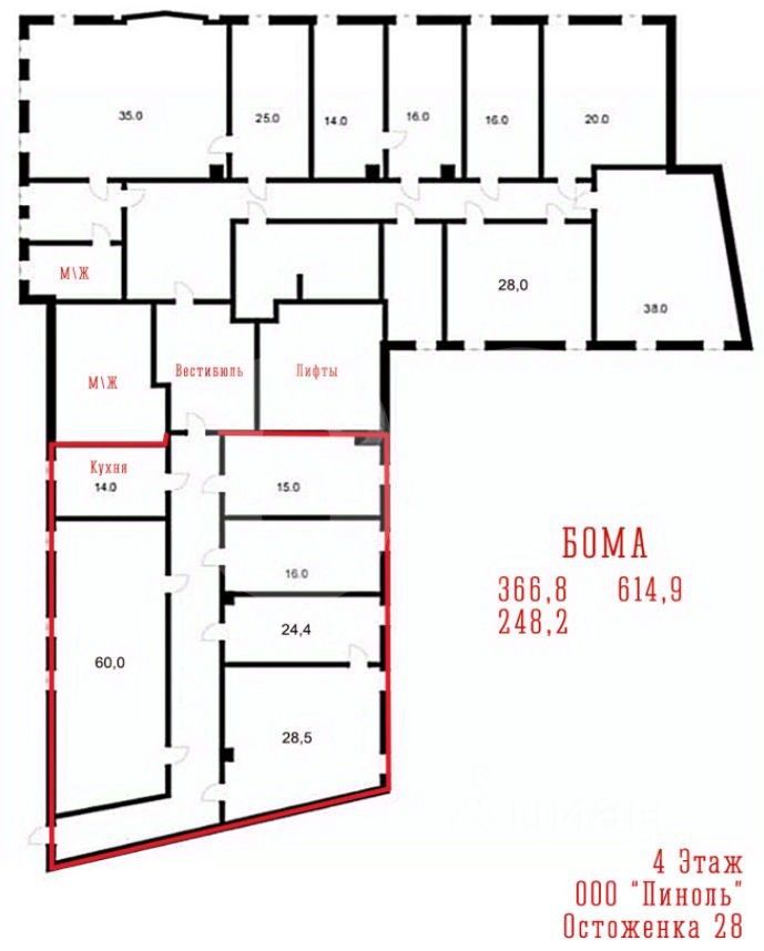 Экономьте время и деньги: отрисуем планировку под вас бесплатно, с любым количеством правок. Предлагаем в аренду Офис в бизнес-центре ''Алексеевский дом'' по адресу: Москва, улица Остоженка, 28. Рабочих мест: от 31 до 55*. Площадь: 248 м2. Планировка: кабинетная. Состояние: готово к въезду. Ставка (включая эксплуатацию): 53 070 руб. за м2/год. Арендная плата: 1 096 780 руб./мес. Налог: включая НДС. Коммунальные расходы: включены в арендную ставку. Этаж: 4 из 5. Тип аренды: прямая аренда. Охрана: пропускной режим. Метро рядом: м. Парк Культуры в 5 минутах пешком, м. Кропоткинская в 8 минутах пешком, м. Смоленская в 15 минутах пешком. Этот адрес обслуживает налоговая 4. Парковка наземная. Системы здания: Вентиляция: приточно-вытяжная. Кондиционирование: центральное. Пожарная сигнализация: спринклерная система. >ID объекта - 56599. *Количество рабочих мест рассчитано автоматически: от 4,5 м2 на человека до 8 м2 на человека. Почему клиенты доверяют нам? 1. 12000 объектов коммерческой недвижимости Москвы и Области, включая эксклюзивные и внерыночные. 2. Работаем без комиссии и скрытых платежей. Вы заключаете договор напрямую с собственником. 3. Профессиональное сопровождение: консультации на каждом этапе, помощь в подборе оптимального решения для вашего бизнеса. 4. 17 лет опыта в коммерческой недвижимости. Не тратьте время, доверьте поиски нам! Позвоните, и мы оперативно организуем просмотр или подготовим подборку объектов.