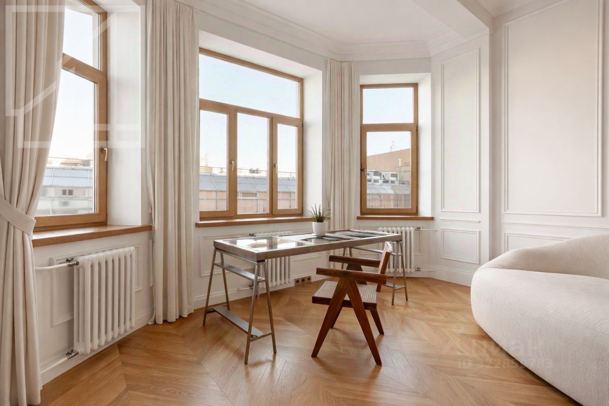 ID 35105. Подземный паркинг! Невероятно светлая 4-комнатная квартира в стиле неоклассицизма в кирпичном доме в районе Чистых Прудов. Панорамные виды на 3 стороны света - нет ощущения ''окна в окна''! И абсолютная тишина! Современный ремонт с сохранением духа истории. Полная комплектация мебелью и техникой. Установлены кондиционеры, теплые полы, бойлер. Функциональная планировка: общая площадь 151 кв. м., гостиная, спален - 3, ванных комнат - 2, гардеробная - 2, балкон - 2. Много мест для хранения, предусмотрены антресоли. Высота потолков 3,4 м! Парковка во дворе стихийная. На углу дома есть машиноместо в подземном паркинге. В ближайшем доступе: кафе, магазины, рестораны, бары, магазины, салоны красоты, музеи, театры. Можно с детьми. Животные обсуждаемо. Квартира свободна. Please feel free to contact Intermark Real Estate to get detailed information or to set up a viewing! 24/7 help desk service with English-speaking operators В квартире: С мебелью, М/место в подземном паркинге, Посудомоечная машина, Стиральная машина, Сушильная машина, Бойлер, Душевая кабина, Спутниковое/кабельное телевидение, Кондиционер, Видеонаблюдение, Интернет, Балкон, Видовая квартира, Можно с детьми, Можно с животными, Ванна, Интерьер в современном стиле, Гардеробная комната, Лифт, Кухонная мебель, Окна на улицу, Окна во двор
