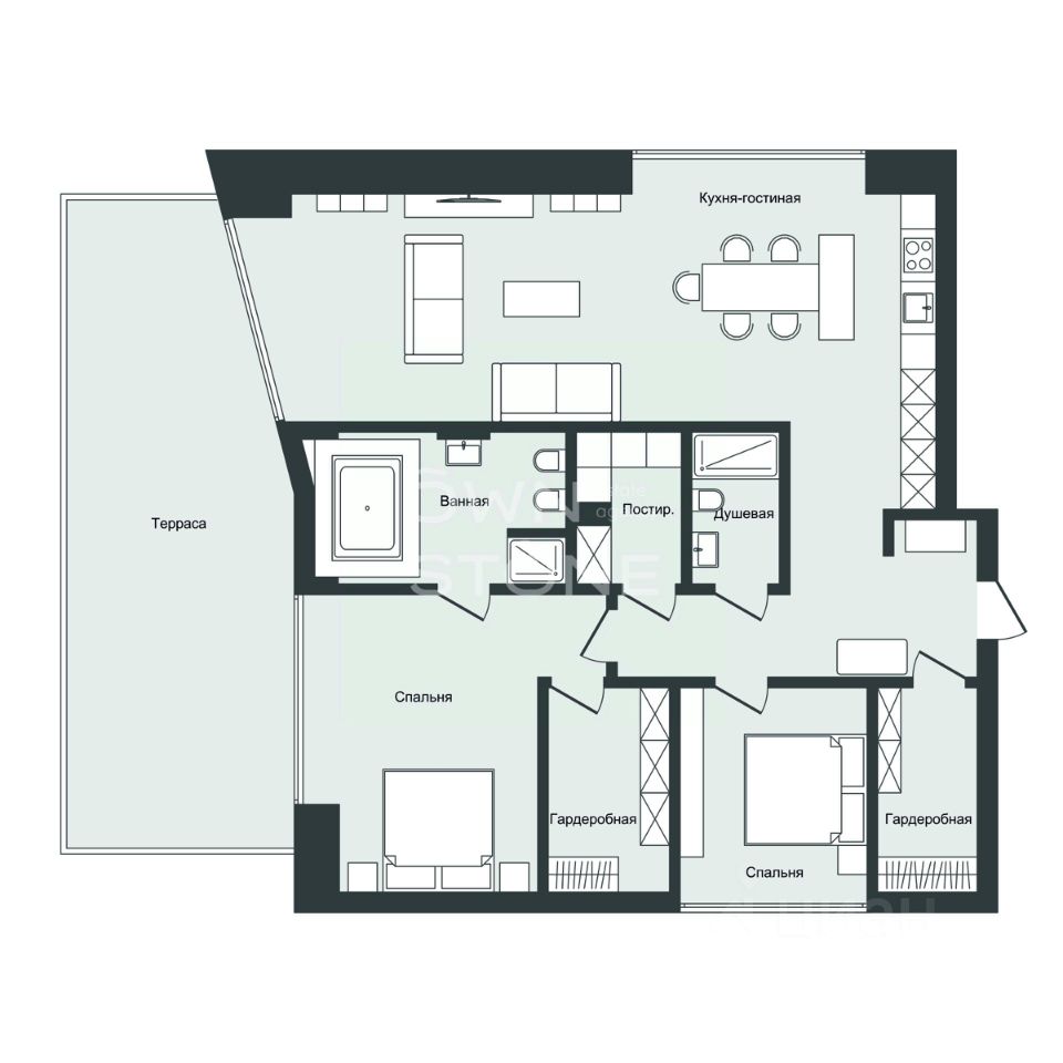 Квартира с террасой. Без комиссии для арендатора! Сотрудничаем с коллегами 50/50 Стильная 3-комнатная квартира. 2/6 этаж. Высота потоков - 3,2 м. Количество спален: 2. Количество санузлов: 2. Общая площадь: 170 кв. м. Окна во двор и на улицу Новый, современный ремонт. Квартира в идеальном состоянии после косметического ремонта. Полностью меблирована. В наличии: приточно-вытяжная система, посудомоечная машина, кофейная машина, духовой шкаф, приобретены новые матрасы на кровати, 2 гардеробные комнаты, постирочная. В подземном паркинге есть машиноместо. Респектабельный дом, вооруженная охрана, консьерж-сервис, благоустроенный внутренний двор с большим количеством зелени. Самый элитный район Москвы с соответствующей инфраструктурой. Фитнес-клуб с бассейном - Golden Mile. Возможна аренда с животными и маленькими детьми Оперативный показ.