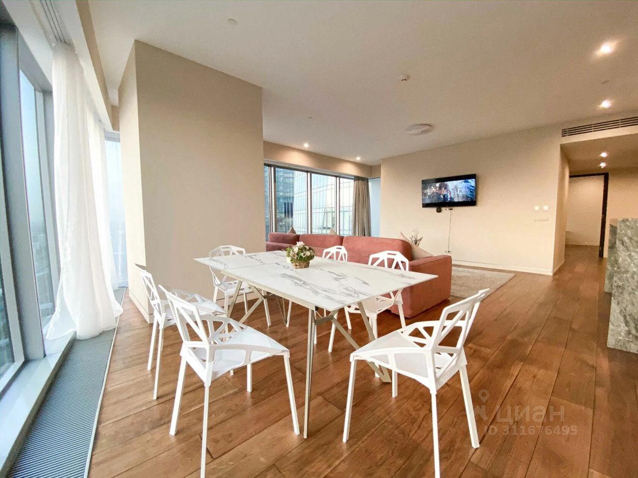 Предлагается в аренду Апартаменты на 23 этаже с панорамными видами на Парк Победы и Кутузовский проспект в Премиум Квартале Match Point (Матч Поинт). Светлые и просторные Апартаменты с дизайнерским ремонтом в современном стиле. Использованы качественные отделочные материалы. ПЛАНИРОВКАЯ: Кухня-гостиная, мастер-спальня со своим с/у, вторая спальня, втрой с/у, прихожая. Элементы интерьерного декора: деревянные рейки на стенах, молдинги, различные сценарии освещения (люстры, трековые светильники, подвесные светильники, подсветки). Современный кухонный гарнитур до потолка полностью оборудован: встроенный холодильник, духовой шкаф, эл.варочная панель, вытяжка, посудомоечная машина, микроволновка, чайник. Продуманные шкафы для хранения кухонных принадлежностей. Обеденная зона с круглым столом на 4 персоны. Мягкий, светлый, угловой диван для комфортного просмотра ТВ. Главная Мастер-спальня с двуспальной кроватью с мягким изголовьем, телевизор, подвесная тумба с большим зеркалом, большой встроенный шкаф до потолка. Собственный санузел с душевой (скрытая дверь санузла). Вторая Спальня: рабочий стол у окна, шкаф для хранения вещей или документов. Второй просторный Совмещенный санузел с ванной. Удобные полки для хранения предметов ванной комнаты. В коридоре имеется постирочный шкаф со стиральной машиной. В Прихожей на входе большой, встроенный шкаф для хранения одежды и обуви. В каждой комнате кондиционеры и панорамные окна. В санузлах - керамогранит, подогрев полов. В комнатах - паркетная доска. Квартал расположен в престижном Западном округе в непосредственной близости от Кутузовского проспекта и Парка Победы. В пешей доступности от квартала сразу три станции метро Парк Победы, Багратионовская и Филёвский парк. Рядом парки, школы, детские сады, магазины, рестораны. Закрытый благоустроенный внутренний двор без машин. Круглосуточное видеонаблюдение. В подъезде предусмотрена стойка консьержа. Трёхуровневый подземный паркинг. Звоните! Прямой представитель собственника! БЕЗ комиссий для Арендатора!