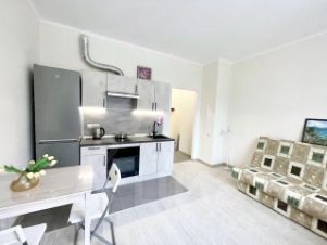 Сдаётся студия 31 м² на 12-м этаже нового 14-этажного дома от собственника.Квартира полностью укомплектована необходимой мебелью и бытовой техникой: плита, духовой шкаф, вытяжка, холодильник, стиральная машина, телевизор со Smart TV. Свежий ремонт — вы будете первыми жильцами.Во дворе расположены Магнит и Пятёрочка, пекарня Буханка, пункты выдачи WB и Ozon. В пешей доступности — Мираторг и Вкусно — и точка.Закрытый внутренний двор без машин, только для пешеходов. Детские площадки, зона с уличными тренажёрами, много красивых и уютных локаций для отдыха.Остановка общественного транспорта — в пешей доступности, до метро 1520 минут на автобусе.Залог — 42 000 ?.Возможно проживание с детьми.Допускается проживание с маленькой чистоплотной собачкой.Предоплата за 1 месяцЗалог 42 000 ₽