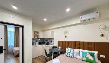 Сдаю уютную квартиру-студию с дизайнерским ремонтом в благоустроенном районе. В квартире никто не жил, поэтому интерьер в идеальном состоянии и готов к заселению. В квартире предусмотрено много места хранения, утеплена лоджия. Имеется вся необходимая техника, холодильник, посудомоечная машина, варочная поверхность, духовой шкаф, микроволновая печь, стиральная машина, кондиционер, телевизор. Квартира находится в районе с развитой инфраструктурой: рядом набережная, множество магазинов и кафе. До метро всего 10 минут пешком. Отличный вариант для тех, кто ищет комфорт и стиль в современном городе.Предоплата за 1 месяцЗалог 58 000 ₽