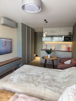 Id 60154. Сдается студия с дизайнерским ремонтом в бизнес-квартале жилого комплекса ''Прокшино''!Представьте, как вы начинаете день с чашечки кофе с видом на пруд из своей светлой и уютной студии. Прекрасный вид с окна, современная и комфортная атмосфера как с наружи так и у Вас в квартире. Студия сдается впервые, все ново и продуманно до мелочей для комфортной и удобной жизни!Студия оборудована всей необходимой мебелью и современной техникой: кондиционер, микроволновка, духовой шкаф, варочная панель, вытяжка, телевизор, стиральная машинка и многофункциональные вместительные шкафы. Интернет уже подключен, поэтому можно легко оставаться на связи.По потребности со студией сдается машиноместо и кладовое помещение на -1 этаже!ЖК ''Прокшино'' с кварталом БИЗНЕС-класса, расположен в одном из самых комфортных районов Москвы!На территории комплекса множество различных магазинов, кафе, ресторанов, фитнес-центров и детская площадка! Закрытая территория для жильцов, видеонаблюдение, охрана, подземный и гостевой паркинги, а так же в пешей доступности находится парк ''Хованская дубрава''.Удобное расположение: 7 мин мешком до метро ''Прокшино'', через живописный пешеходный мост и удобные выезды на главные магистрали.Квартира бизнескласса — выбор тех, кто ценит комфорт, безопасность и высокий уровень жизни, при этом хочет жить среди зелени и иметь лёгкий доступ к транспортной инфраструктуре.Хотите увидеть свою новую квартиру? Звоните, я отвечу на все вопросы и с удовольствием покажу студию!!!Залог 65 000 ₽