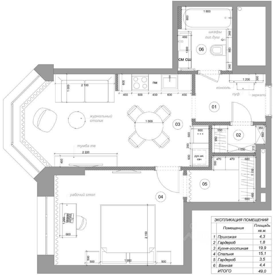 45 м² · Этаж 19 из 25