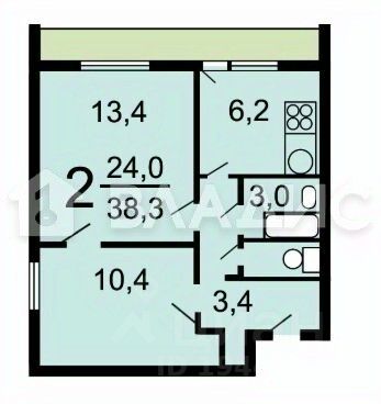 38 м² · Этаж 2 из 14