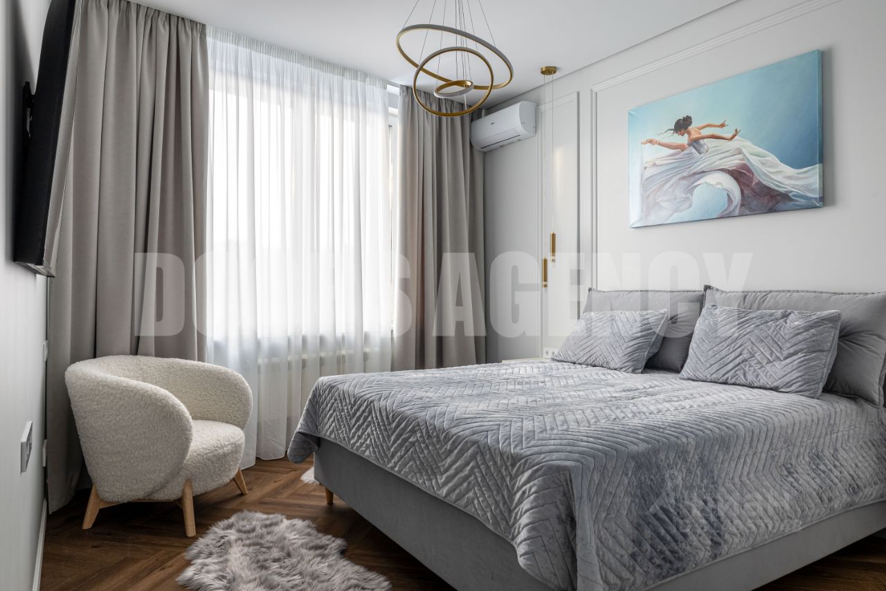 Без комиссии для арендатора. В аренду предлагается стильная трехкомнатная квартира (евротрешка) в современном ЖК мой адрес На Береговом. Общая площадь квартиры составляет 84,4 кв. м, что позволяет комфортно разместиться любому составу проживающих. Она расположена на 22-м этаже, в отдельно стоящем одноподъездном корпусе на набережной. Из окон открывается живописный вид на Сити и набережную, а из спален вечерами вы можете наблюдать красивые закаты. Квартира порадует вас дизайнерским ремонтом и продуманной планировкой. Две изолированные спальни (одна со своей гардеробной). Кухня совмещена с гостиной и оснащена всей необходимой мебелью и техникой: здесь есть холодильник, большая посудомоечная машина, кофемашина, варочная панель, духовой шкаф, вытяжка. Кондиционеры в каждой комнате, а в зонах плитки теплые полы. В квартире есть два санузла — совмещенный и отдельный гостевой, а в ванной комнате установлена душевая кабина. Жилой комплекс оснащен подземным паркингом (не входит в стоимость аренды). Придомовая парковка бесплатная, стихийная. Рядом с домом находятся все необходимые для комфортной жизни объекты инфраструктуры: школы, детские сады и магазины. Под домом современная набережная с прогулочными зонами и остановкой водного транспорта. В шаговой доступности станции метро Шелепиха, Фили. Станция МЦД 4 ''Москва-Сити''. Все это позволяет быстро добраться до центра города и других районов самыми разнообразными и интересными маршрутами. Квартира сдается только в долгосрочную аренду. Для заключения договора необходимо внести страховой депозит (в размере месячной оплаты) и предоплату за первый месяц проживания. Отдельно оплачиваются счетчики и интернет. Записывайтесь на просмотр, чтобы оценить все ее преимущества лично.