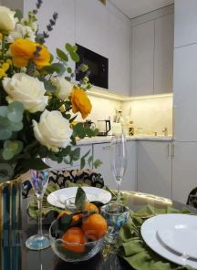 Id 387459. Студия с качественным ремонтом. Новая мебель Guter: встроенный кухонный гарнитур, шкафы для ранения, кровать трансформер. Хорошая абсолютно новая техника Hier и Kuppersberg: кондиционер, холодильник, стиральная машина, плазменный телевизор с большой диагональю, встроенная печь-гриль. Есть все необходимое для жизни влдоть до чайника и посуды. Заезжай и живи. Великолепный вид из окна. В ЖК огороженная территория, охрана, видеонаблюдение, парковка, СКУД. Отличная транспортная доступность до нескольких станций метро. Район зеленый, экологически чистый с хорошей развитой инфраструктурой.Залог 52 000 ₽