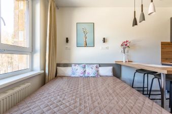 Сдается уютная квартира-студия на длительный срок (от 6 месяцев).- Коммунальные услуги включены в стоимость аренды!- Возможна аренда с заключением договора с юридическими лицами.Что вас ждет в нашей студии:- Удобная двуспальная кровать,- Обеденый стол со стульями,- Холодильник,- Стильный кухонный гарнитур,- Микроволновая печь,- Встроенная варочная панель,- Стиральная машина.ИНФРАСТРУКТУРА:Рядом расположены лесопарковая зона, бизнес парк Румянцево, супермаркеты, аптека, кафе.ТРАНСПОРТНАЯ ДОСТУПНОСТЬ:- от метро Румянцево 15 минут пешком,- от остановки ''Метро Румянцево'' на автобусах 343 и 485 до остановки ''Дудкино'' (2 минуты пути), далее пешком 10 минут.Звоните или пишите в чат - с радостью ответим на все вопросы и оперативно организуем показ!Предоплата за 1 месяцЗалог 47 990 ₽