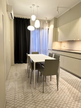 Сдается в аренду на длительный срок 4-х комн.квартира площадью 114 кв.м. на 10-м этаже дома бизнес-класса 2017 года постройки в ЖК ''МАЯК'' в Химках.Планировка распашонка евро-3, т.е. кухня-гостиная + 3 раздельных спальных комнаты, 2 совмещенных санузла, гардеробная, прихожая.На кухне: новый кухонный гарнитур, электрическая плита, духовой шкаф, вытяжка, посудомоечная машина, холодильник, фильтр для воды, обеденный стол на 3-4 человека, кондиционирование.В зоне гостиной небольшой диван, тумба под телевизор, раздельное освещение.С кухни-гостиной есть 2 выхода на застекленную лоджию с видом во двор, с инфракрасными лампами для зимнего периода. СПАЛЬНЯ 1 (детская): 2 шкафа для одежды, кондиционер, в остальном комната пустая (наполнение обсуждается), выход на лоджию (общая с кухней-гостиной).СПАЛЬНЯ 2 (основная): двуспальная кровать с качественным матрасом, 2 прикроватных тумбочки, индивидуальное освещение. Шкаф для одежды, телевизор, туалетный столик (трюмо)/рабочий стол. Выход на застекленную лоджию (вид на воду).СПАЛЬНЯ 3 (кабинет): раскладной диван, книжные шкафы, кондиционер, выход на балкон (вид на воду).2 совмещенных санузла: в обоих теплые полы, в одном ванная, в другом душ. В прихожей при входе большой шкаф-купе.КВАРТИРА РАНЕЕ НЕ СДАВАЛАСЬ, использовалась собственниками. Окна на 2 стороны (кухня-гостиная + детская во двор), 2 спальни в сторону реки.Закрытый двор ЖК с детскими и спортивными площадками, доступ только с ключом, 2 минуты до яхт-клуба. Ритейл на 1-м этаже (Вкусвилл, Пятерочка, Буханка, салоны красоты).Подземная парковка в доме - МАШИНО-МЕСТО включено в стоимость аренды.В 1-й минуте ходьбы пешком от дома - пляж + платный бассейн Ясная Поляна.4 минуты ходьбы до полноценного парка - Парк Культуры имени Л.Н.Толстого (теннисные корты + академия тенниса Александра Островского, колесо обозрения, спортивные и детские площадки, кафе, скейт-парк и пр.).13 минут пешком (через парк) до станции D3 Химки (36 минут до Ленинградского вокзала_ст.метро Комсомольская), 4 минуты до станции Ховрино - переход на метро (зеленая ветка).5 км до выезда на МКАД, 14 минут до Ленинградского проспекта.К СОЖАЛЕНИЮ, не можем рассмотреть арендаторов с животными. НО очень приветствуем семьи с детьми, важна чистоплотность. Долгосрочный договор аренды, при подписании оплачивается: 1-й месяц + ''последний месяц'' (возвратный депозит), агентская комиссия 60%. ПОКАЗЫ В БУДНИ И ВЫХОДНЫЕ, со среды (17 июля): заезд возможен сразу после подписания договора аренды.Если я не ответил на звонок (такое бывает) - оставьте сообщение в Циан, чтобы у меня остался Ваш контакт для обратной связи.Предоплата за 1 месяцЗалог 215 000 ₽