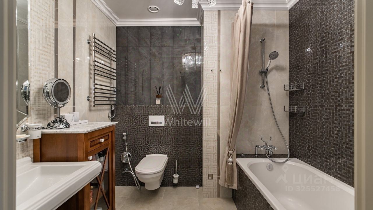 Квартира площадью 180 м² в комплексе особняков премиум-класса ''Итальянский квартал''. Выполнен дизайнерский ремонт с использованием натурального мрамора и ценных пород дерева. Интерьер оформлен в лаконичных светлых тонах, высокие потолки украшены авторскими люстрами. Полы выложены деревянной доской, постелены уютные ковры. Квартира полностью укомплектована дизайнерской мебелью. В гостиной обустроена зона отдыха со светлым диваном и столовая зона на 6 персон. Кухня оснащена встроенной техникой Kuppersbusch. Стены украшены картинами и высокими зеркалами. Из больших панорамных окон открывается вид на город и в благоустроенный внутренний двор. Планировка: просторная гостиная с обеденной и мягкой зоной, кухня с возможностью изолирования, мастер-спальня с ванной и гардеробной комнатой, гостевая спальня, кабинет с гардеробной, ванная комната, гардеробная, постирочная. Кабинет можно оборудовать под третью спальню. Есть два машино-места в подземном паркинге. Главное о доме. ''Итальянский квартал'' — семь клубных особняков высотой от 2 до 10 этажей, названных в честь Рима, Милана, Флоренции и других городов Италии. Средиземноморская архитектура с черепичными крышами, травертином и неоклассическими деталями создаёт камерный характер ансамбля. Во дворах в стиле римских амфитеатров — тихие прогулочные зоны и места для встреч. В составе комплекса работают фитнес-клуб с бассейном, spa-центр и детские пространства ''Территория счастливого детства'' и Piccolo School. Главное о локации. Тверской район живёт насыщенной культурной жизнью. В десяти минутах — сад ''Эрмитаж'' с фестивалями и концертами, театр ''Новая опера'' и гастромолл ''Депо''. Утро можно начать в Делегатском парке или в ''Кофемании'' на Новослободской, а вечером заглянуть в один из ресторанов на Белой площади. Для семей рядом лицей 1574 и детский сад 1497. До Садового кольца всего 500 метров, до Бульварного — пять минут, а до аэропорта Шереметьево удобно добраться на аэроэкспрессе от Савёловского вокзала. Комментарий эксперта. Меня зовут Олеся Минлигареева — брокер компании Whitewill. Я отвечаю за аренду этого лота. Свяжитесь со мной, чтобы получить расширенную презентацию, больше фотографий или договориться о просмотре. Могу провести экскурсию по локации и познакомить вас с этим домом. ID 342.