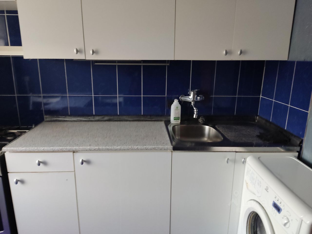Сдается простенькая квартира, ремонт давно. В комнате диван, шкаф, телевизор. На кухне гарнитур, из бытовой техники холодильник и стиральная машина автомат. Балкон застеклён.