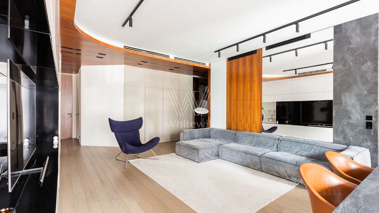 Квартира с 3 спальнями общей площадью 149 м² в комплексе премиум-класса RedSide. Выполнена дизайнерская отделка с использованием натурального шпона. Интерьер оформлен в современном стиле в благородных серых и коричневых тонах. Установлены высокие двери под потолок, биокамин с живым огнём в гостиной. Проведена полноценная звукоизоляция сверху и снизу. Благодаря панорамным окнам пространство наполнено светом и воздухом. Спланирована кухня-гостиная с обеденной зоной, мастер-спальня с собственной ванной комнатой и гардеробной, 2 детские спальни, вторая ванная комната, гардеробная, постирочная, прихожая. Две утеплённые лоджии оборудованы под кабинеты. Квартира укомплектована итальянской мебелью Bonaldo, Boconcept, бытовой техникой Miele, Asko и сантехникой Villeroy & Boch. Установлены приточная вентиляция с подогревом, сплит-система кондиционирования, система защиты от протечек, тёплые полы с управлением по WiFi, сенсорные выключатели, шторы blackout с электроприводом в спальнях, мощные роутеры Kinetic. Предусмотрены 2 машино-места в подземном паркинге за дополнительную плату. Главное о доме. RedSide — квартал на Пресне с внутренней территорией пять гектаров и дворами без машин. В лобби — натуральный камень, мягкий свет, стойка ресепшн и спокойные зоны для коротких встреч. На первых этажах открылись супермаркет ''Азбука Вкуса'' и повседневные сервисы. Внутри квартала работает семейный фитнес-клуб World Class. Детский сад решает ежедневную логику маршрутов для семей. Для автомобилей предусмотрен многоуровневый паркинг со спуском на лифте к лобби. Главное о локации. Название напоминает о красной линии на карте Москвы, и локация уходит корнями в историю Пресни. В двух шагах парк Красная Пресня с прудами и аллеями, где летом проходят фестивали и концерты. За покупками жители ходят в ''Афимолл Сити'' или на Центральный рынок. Вечерами собираются в барах на Красном Октябре или в ресторанах на Большой Грузинской. Для детей поблизости школа 1231 и лицей 1501. До Кремля отсюда всего 10 минут на машине. Комментарий эксперта. Меня зовут Олеся Минлигареева — брокер компании Whitewill. Я отвечаю за аренду этого лота. Свяжитесь со мной, чтобы получить расширенную презентацию, больше фотографий или договориться о просмотре. Могу провести экскурсию по локации и познакомить вас с этим домом. ID 4 845.