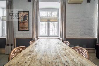 ID 496659 Очень красивая и модная квартира площадью 151,1 м2 расположена в элитном клубном доме Булгаков в самом сердце Патриарших прудов.Функциональной планировкой предусмотрена гостиная, объединенная с кухней-столовой, каминная, мастер-спальня с ванной комнатной и гардеробной, детская спальня с ванной комнатой, гостевой санузел и постирочная. Из гостиной и хозяйской спальни предусмотрены выходы на балкон. Коллекционный дизайн, мебель, декор, предметы искусства. Техника Miele и других премиальных брендов. Из окон открываются виды в зеленый благоустроенный двор. Предусмотрены два машиноместа в подземном паркинге. Участник ассоциации AREA.Предоплата за 1 месяцЗалог 57 000 ₽