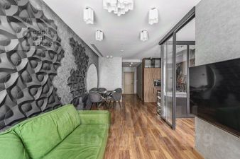 В этой квартире продумано всё до мелочей в плане эргономики пространства! Тёплый пол во всех функциональных зонах, включая пол в душевой. Потолочные светильники с регулировкой температуры цвета и яркости регулируются как настенными выключателями, так и с пульта. Зональная Led-подсветка теневого профиля потолка в четырёх зонах квартиры. Шторы открываются/закрываются дистанционно, с пульта. Холодильник и стиральная машина с самым низким уровнем шума из всех существующих моделей. Духовка с функцией микроволновки. Кухонный кран смесителя можно переключать в режим набора питьевой воды, проходящей через систему фильтрации. Очень много стильных электрических розеток, в том числе с usb-зарядкой, практически везде, куда дотянется рука. Высокая кровать на деревянных ножках с системой хранения и с ортопедическим матрасом 160х200 см. Диван тоже раскладывается в дополнительное спальное место 140х200 см. Бойлер для подогрева воды, на случай летнего профилактического отключения, спрятан в шкафу над инсталляцией унитаза. Из окон потрясающий, залипательный вид с высоты 28-го этажа на Москву ,особенно ночью. В 2026 году, в 100 метрах от дома, откроется подземная станция метро Звенигородская. На первом этаже огромный холл с консьержем, с двумя санузлами и лаунж зоной для ожидания. Территория внутри ЖК ''Сердце Столицы'' потрясает воображение своими размерами и дизайном. Это просто город в городе, плюс набережная Москва-реки. Инфрастуктура есть вся, включая фитнес-клуб премиум класса с бассейном ''Икс-фит''.Предоплата за 1 месяц