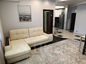Сдаётся просторная, светлая двухкомнатная квартира на длительный срок.Удобная планировка: изолированные комнаты 23 и 14 кв.м, кухня 12 кв.м, гардеробная, просторный холл, два санузла, два застеклённых балкона. Тёплые полы, потолки 2,8 м, отличная планировка. Окна выходят в тихий двор. Вся необходимая мебель и техника в наличии, включая посудомоечную машину. Чистый подъезд, консьерж, спокойные соседи. Дом расположен в благополучном районе, всего 7 минут пешком до метро.Подойдёт для семьи или пары, ценящих комфорт и тишину. Без животных.Предоплата за 1 месяцЗалог 50 000 ₽
