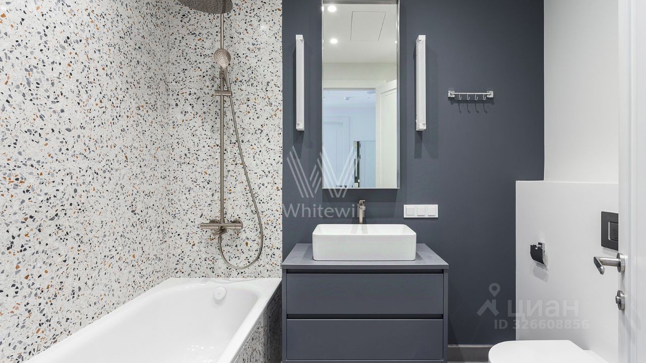 Сдается от собственника. Современная квартира с продуманной планировкой и качественным ремонтом. Кухня-гостиная, отдельная большая спальня, гардеробная с постирочной и два санузла. Много встроенного хранения и света. Встроенная техника Bosch. Тёплые полы в коридоре, туалете, гардеробной и ванной, тёплая стена в мастер-ванной. Системы антипротечки, двойная фильтрация воды. Кондиционеры в гостиной и спальне. Квартира не сдавалась, полностью готова к проживанию. К сожалению, строго без животных. Метро в пешей доступности.