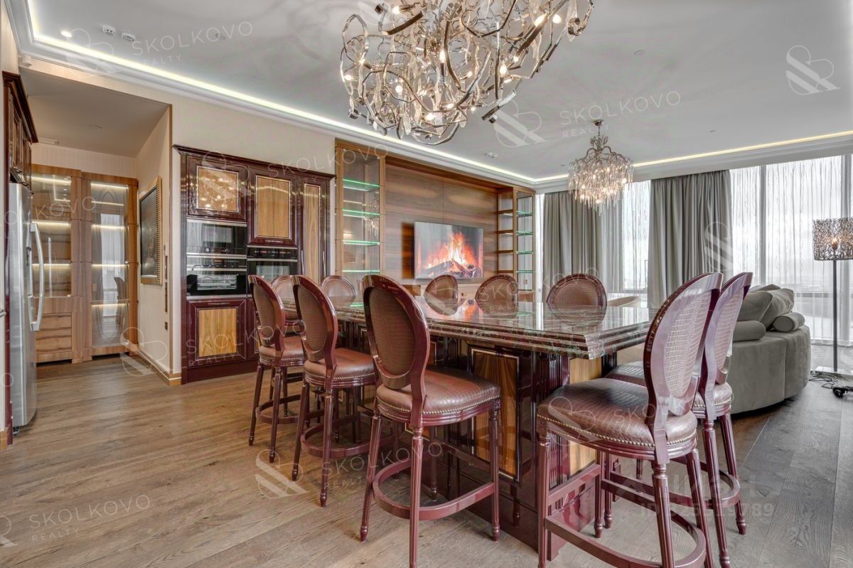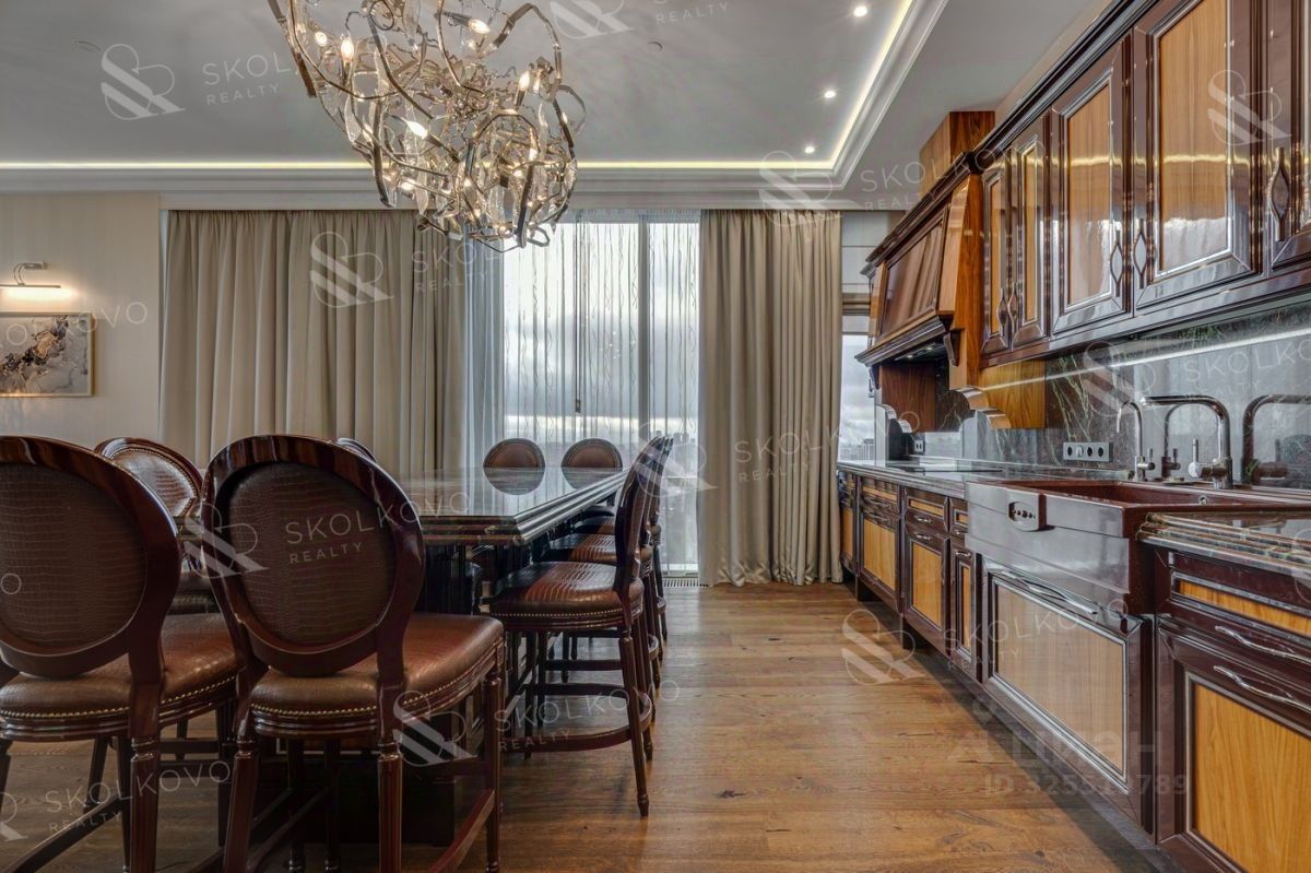 id: 550984 Вас ждёт уникальное предложение в аренду — великолепная 4-комнатная квартира с потрясающими панорамными видами на Москву, расположенная в престижном жилом комплексе ''Дом на Мосфильмовской''. Это пространство идеально сочетает в себе роскошь и уют, где каждая деталь продумана до совершенства. Параметры квартиры Этаж: 36 Площадь: 170 м² Комнаты: кухня-гостиная, две спальни, кабинет, два санузла, постирочная Потолки: 3,4 метра Мебель: из США и Великобритании Техника: Kuppersbusch и Miele Охрана: охраняемая территория, сигнализация Парковка: одно место в подземном паркинге включено в стоимость. В центре квартиры расположена великолепная кухня-гостиная, выполненная в гармоничном сочетании натуральных и элитарных материалов. Кухонный гарнитур из палисандра в сочетании с столешницей и фартуком из бразильского гранита Mulien rouge создают уникальную атмосферу. Итальянские барные стулья от фабрики Bakokko и премиальная немецкая встроенная техника Kueppersbusch обеспечивают не только эстетическое удовольствие, но и максимальную функциональность. Кухонный остров, превращённый в обеденный стол, защищённый шикарными осветительными приборами из коллекции ручной работы от Brand van Egmond, делает это пространство идеальным для семейных ужинов и встреч с друзьями. Светильники, выполненные из никелированной стали и стекла, привносят изысканность и стиль. Квартира включает две элегантные спальни и комнату свободного назначения, которая легко может быть преобразована в кабинет или детскую. Каждое пространство оборудовано бесшумным кондиционированием Daikin, электрокарнизами и тёплыми полами для вашего комфорта. Шведская дубовая паркетная доска Kahrs и радиаторы Arbonia создают атмосферу уюта и тепла. В главной спальне вас встретит люстра из венецианского стекла, а во всей квартире предусмотрены системы скрытого хранения, bijon variante с уникальным дизайном и высококачественной австрийской фурнитурой Blum — для хранения всех ваших вещей. ''Дом на Мосфильмовской'', проектированный знаменитым архитектором Сергеем Скуратовым, входит в ряды лучших небоскребов мира и представляет собой шедевр современного жилого строительства. Контраст светлых и тёмных фасадов создаёт выразительный силуэт, а роскошные входные группы с мрамором и тропическими растениями предоставляют жителям максимальный комфорт и удобство. На территории комплекса расположены спортивные площадки, уютные зоны отдыха и множество зелени, создающие атмосферу гармонии и спокойствия. Для автомобилистов предусмотрен трёхуровневый подземный паркинг с автомойкой. Комплекс расположен на Воробьёвых горах в одном из самых престижных районов столицы, окружённый иностранными посольствами и ведущими учебными заведениями. Удобные транспортные развязки позволят без труда добраться до центра города и популярных загородных направлений. Здесь, в непосредственной близости, находятся Московский гольф-клуб, музей ''Мосфильм'' и живописные аллеи у Мосфильмовского пруда. Школы и детские сады расположены вс