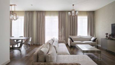 Апартаменты с 2-мя спальнями общей площадью 150 м² в комплексе ''ВТБ Арена Парк'' в клубном доме Hyatt. Выполнен дизайнерский ремонт в приятных светлых тонах. Апартаменты полностью укомплектованы мебелью, кухня оснащена бытовой техникой. В прачечной находится стиральная и сушильная машины фирмы AEG. Столовая представлена обеденной группой на 6 персон и объединена с уютной гостиной с двумя диванами. Мастер-спальня имеет индивидуальный санузел. Планировка: кухня, столовая-гостиная, 2 спальни, 2 санузла, постирочная.Комментарий эксперта. Меня зовут Яна Гришко — брокер компании Whitewill. Я отвечаю за аренду этого лота. Свяжитесь со мной, чтобы получить расширенную презентацию, больше фотографий или договориться о просмотре. Могу провести экскурсию по локации и познакомить вас с этим домом.ID 1 000.Предоплата за 1 месяцЗалог 620 000 ₽
