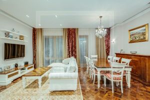 ID 35162. Предлагается четырехкомнатная квартира в престижном жилом комплексе ''Садовые Кварталы'' в историческом районе Хамовники. Это эксклюзивное предложение порадует любителей комфорта и стиля. Квартира располагается на четвертом этаже, обладает общей площадью 180 квадратных метров и окнами, выходящими сразу на три стороны света, обеспечивая великолепную инсоляцию пространства в течение всего дня. Пространство квартиры грамотно спланировано и включает просторную гостиную, функциональную кухню, две уютные спальни, удобную рабочую зону-кабинет, который легко превращается в дополнительную гостевую комнату, две полноценные ванные комнаты и отдельный гостевой санузел. Каждый уголок продуман до мелочей и оборудован современной премиум-класс мебели и техники. Особое внимание уделено деталям отделки: использованы исключительно качественные натуральные материалы, подчеркивающие атмосферу домашнего тепла и уюта. Высокие потолки, большие панорамные окна открывают вид на внутренние территории комплекса с зелеными зонами отдыха и тихими прогулочными аллеями. Для владельцев предусмотрено одно удобное машиноместо в охраняемом подземном паркинге, исключающем необходимость беспокоиться о парковке автомобиля возле дома. Комплекс представляет собой уникальный пример городской среды нового поколения: территория освобождена от автомобильного движения благодаря грамотному проектированию подземных проездов. Жителей ждут ухоженные зеленые зоны с декоративным водоемом, тенистыми деревьями и благоухающими клумбами. В непосредственной близости расположены любимые места москвичей: бары, гастрономические заведения, культурные учреждения, фитнес-клубы и образовательные площадки для детей всех возрастов. Отличная транспортная доступность района позволяет быстро добраться до любой точки города. ''Садовые кварталы'' — идеальный выбор для тех, кто ценит комфорт, качество и красоту своего жилища. Please feel free to contact Intermark Real Estate to get detailed information or to set up a viewing! 24/7 help desk service with English-speaking operators В квартире: С мебелью, Парковка, Посудомоечная машина, Стиральная машина, Сушильная машина, Бойлер, Душевая кабина, Теплые полы, Спутниковое/кабельное телевидение, Кондиционер, Видеонаблюдение, Сигнализация, Охрана, Интернет, Балкон, Видовая квартира, Можно с детьми, Можно с животными, Европланировка, Гардеробная комната, Лифт, Кухонная мебель, Окна на улицу, Окна во дворПредоплата за 1 месяцЗалог 1 300 000 ₽