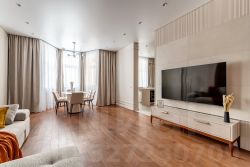 Вашему вниманию предлагается прекрасная 4-х комнатная квартира в ЖК бизнес-классе Обыкновенное Чудо, в престижном районе г. Москвы. Квартира очень светлая, много окон, вид из которых на разные стороны дома, располагается на 5 этаже - идеальная высота в современном городском квартале.Общая площадь 120 кв.м. В квартире только что закончен дизайнерский ремонт, никто не жил!!Функциональная планировка: просторная кухня - гостиная со столовой зоной и выходом на большую лоджию, три изолированные комнаты, два санузла (общий с ванной, и гостевой с душевой кабиной), вместительная гардеробная, постирочная. Квартира полностью меблирована (кухонный гарнитур фирмы Мария, мягкая мебель, спальный гарнитур, шкафы и другие места хранения) и оборудована современной бытовой техникой от ведущих европейских производителей (холодильник, духовой шкаф, микроволновая печь, посудомоечная машина, индукционная варочная панель, стиральная машина с сушкой всё производства Gorenje, вытяжка, винный шкаф), установлены кондиционеры Energolux, сделаны теплые полы.Дом с подземным паркингом находится на огороженной охраняемой территории под круглосуточной охраной, видеонаблюдение во дворе, пропускная система. На территории комплекса расположены прогулочная зона с детской площадкой, спортивная площадка с резиновым покрытием, детские центры, студия йоги и массажа, салон красоты и стоматология. Район с развитой инфраструктурой: в шаговой доступности все необходимое для комфортного проживания: детские сады, школы, поликлиники, магазины и торговые центры, рядом исторический природный заказник Долины реки Сетунь и Воробьёвская набережная.Удобный и быстрый выезд в центр (до 10 минут).Предоплата за 1 месяцЗалог 330 000 ₽