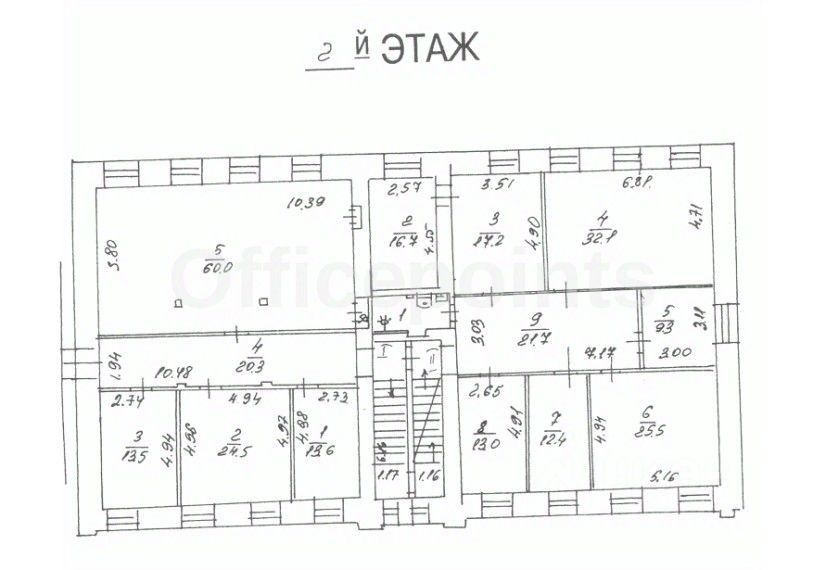 Сдается в аренду офисное помещение на 2 этаже в здании, которое находится по адресу: Ермолаевский пер, д 27. Здание расположено в Пресненском районе Центрального административного округа Москвы. Вблизи находятся станции метро ''Маяковская'', ''Пушкинская'' и ''Тверская''. В непосредственной близости - Садовое кольцо, а также удобный выезд на Третье транспортное кольцо по 1-й Тверской-Ямской улице, что обеспечивает выгодную транспортную доступность здания. Просторное офисное помещение на втором этаже, состоящее из 6-ти кабинетов. Стандартная отделка. В ставку включено все, кроме электричества. На первой планировке представлены свободные площади. Помещение без мебели. Арендные каникулы и ставка подлежат обсуждению.