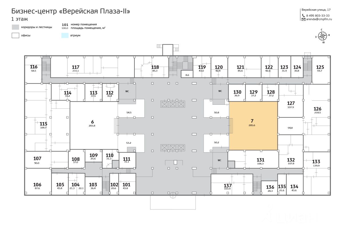 Предлагается в аренду отдельный этаж в БЦ. Общая площадь 325 кв.м. Планировка кабинетная. В офисе выполнен высококачественный ремонт. Вентиляция: приточно-вытяжная. Кондиционирование: центральное. Безопасность: контроль-доступа, круглосуточная охрана, круглосуточный доступ. Арендная ставка: 47 500 кв. м. в год, указанная цена включает НДС и эксплуатацию. Коммунальные платежи оплачиваются отдельно.