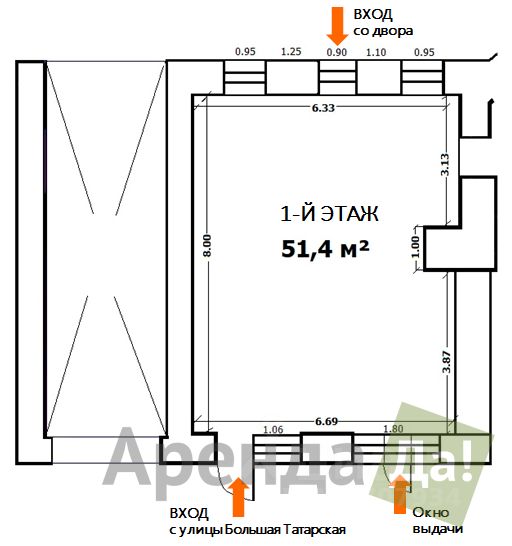 Компания ''АрендаДа!'' сдает в аренду торговое помещение 51,4 кв.м. на улице Большая Татарская. 5 минут пешком от м.Новокузнецкая!Нажмите на эту ссылку, чтобы посмотреть ВИДЕО , НДС включен.Эксплуатация включена! КУ по счетам.ХАРАКТЕРИСТИКИ ПОМЕЩЕНИЯ:5 минут от м. Новокузнецкая и м. Третьяковская.1-й этаж административного здания - режим работы 24/7.1-я линия ул. Большая Татарская.1 вход с улицы, 1 вход со двора.2 больших витринных окна. Одно из них с возможностью выдачи на улицу.Место под вывеску по фасаду помещения.Историческое здание после капитального ремонта, оснащено современными инженерными, охранными и коммуникационными системами.Возможность получения алкогольной лицензии.Электрическая мощность: 60 кВт.ЛОКАЦИЯ:Интенсивный пешеходный трафик делового района.Рядом офисы компаний: Россия 1, ТВ Центр, Siemens, НСПК ''Мир'' и гос. организации с большим потоком посетителей.В этой локации работают до 8 000 человек.Арендатору предоставляются каникулы по договоренности.Быстрый выход на сделку.Подойдет для:Аптека, Банк, Бар, Зоомагазин, Кафе/ресторан, Кофейня, Магазин, Общепит, Пекарня, Пиццерия, Продукты, Ресторан, Салон красоты, Салон связи, Свободного назначения, Стрит ритейл, Супермаркет, Табак, Фастфуд.