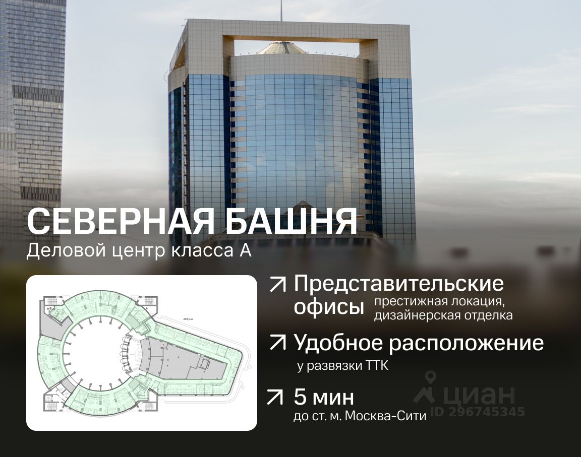Северная Башня Аренда офисов в бизнес-центре класса А, представительские офисы с дизайнерской отделкой, прямая аренда без комиссии Бизнес-центр является частью кластера ''Москва-Сити''. Удобное расположение у развязки Третьего транспортного кольца (ТТК) позволяет доехать до БЦ Северная Башня со стороны Кутузовского проспекта и от Звенигородского шоссе. Развитая транспортная сеть соединяет бизнес-центр со всеми аэропортами Москвы. ПРЕИМУЩЕСТВА: • резидентам бизнес-центра доступна вся инфраструктура территории: кафе и рестораны, салоны красоты, стоматология, аптека, студия растяжки, конференц-зал, нотариус, цветочный салон, отделения банков и другой сопутствующий ритейл. • панорамное остекление фасадов • оригинальные архитектурные решения: впечатляющий атриум в куполе башни на высоте 80 метров • крытый паркинг вместимостью 525 машиномест, ФИН.УСЛОВИЯ: • арендная ставка указана с учётом НДС и ОРЕХ, • арендная ставка от 16 428 720 ?/мес (66 000 ?/м²/год), • прямой договор аренды с собственником без комиссии для клиента. Северная Башня — выбор многих крупных российских и зарубежных компаний. Офисы в этом бизнес-центре идеально подойдут компаниям, стремящимся подчеркнуть статус своей организации и повысить продуктивность сотрудников благодаря продуманному пространству и комфортной рабочей атмосфере. Готовы оперативно организовать просмотр в удобное время и предоставить PDF-презентацию, план, а также видеотур по запросу.