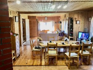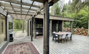 Эко-отель Руза Фэмили Парк предлагает в аренду уютный одноэтажный коттедж из клееного бруса, разделен на две части (дуплекс) - каждая площадью по 80 кв.м с собственным отдельным входом с улицы. Имеется открытая терраса под навесом с комплектом садовой мебели. К услугам гостей: 2 санузла, спальня и гостиная совмещенная с кухней. Комплект спальных и косметических принадлежностей прилагается. Кухня укомплектована бытовой техникой и комплектом посуды. Половина коттеджа идеальна для размещения 4 гостей, двуспальная кровать (или две односпальные кровати) в спальне и большой раскладной диван в гостиной. Возможна установка удобной еврораскладушки (5-е место) или детской кроватки. На улице кирпичный мангал с принадлежностями для барбекю. Бесплатная парковка и уборка входят в стоимость.Предоплата за 1 месяц